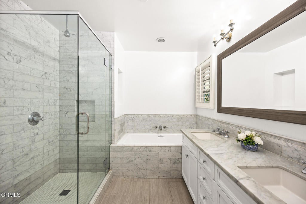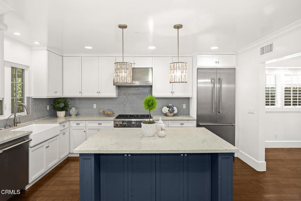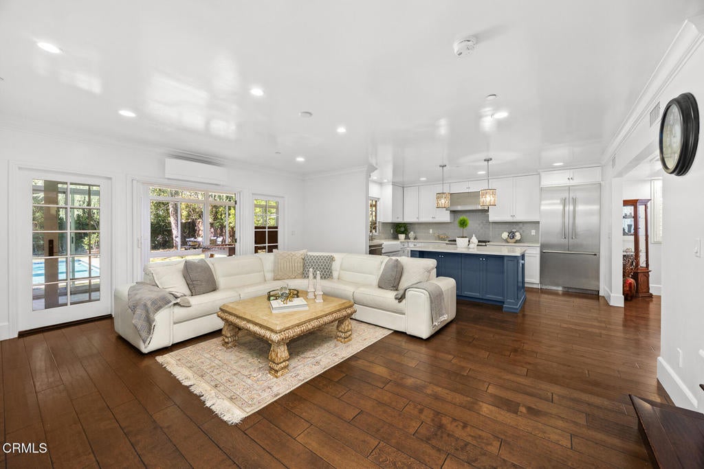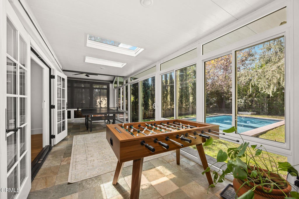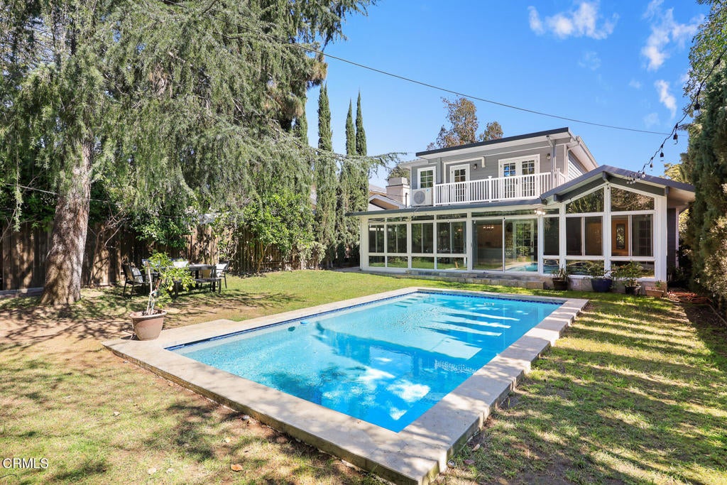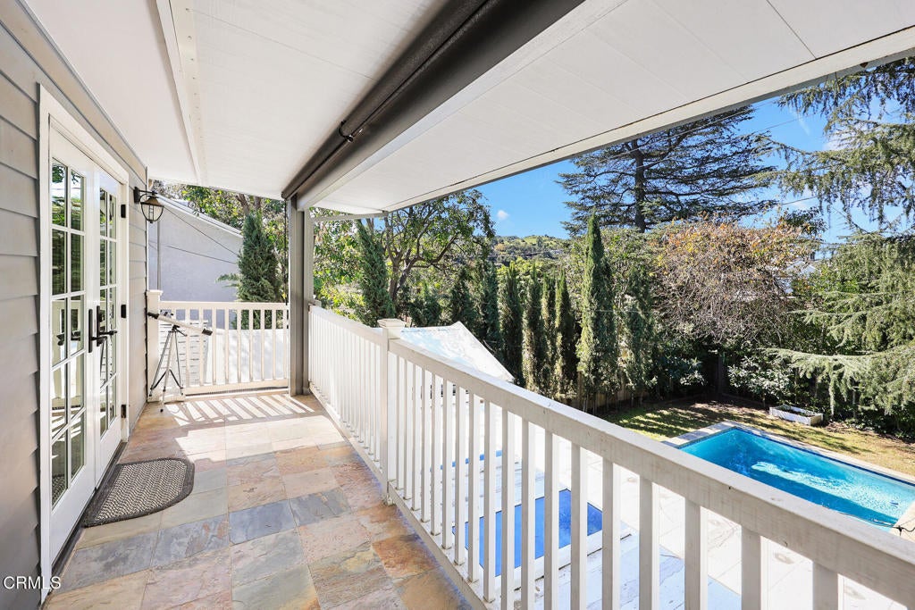 This stunning craftsman-style home, remodeled and modernized in 2017, offers an exceptional blend of character and contemporary living. Boasting 4 bedrooms + office, 4 bathrooms and a versatile den/ sunroom, the home is thoughtfully designed to maximize space and natural light. The entryway flows seamlessly into a spacious living area and a beautifully crafted kitchen featuring custom cabinetry, Thermador stainless steel appliances, a built-in refrigerator, a six-burner stove, and a generously sized island ideal for meal prep and entertaining. Adjacent is a dining area highlighted by an elegant chandelier.The primary suite is a true retreat, complete with a large walk-in closet and a spa-like bathroom featuring marble finishes, double sinks, a soaking tub, and a separate shower. Sliding doors open to a stone patio, providing easy access to the serene backyard. Upstairs, two additional bedrooms each have their own bathrooms and share access to a balcony overlooking the lush, professionally landscaped yard.Recent upgrades elevate the property further, including a new pool, a sunroom with skylights and energy-efficient features, a second-floor covered balcony with sun-blocking blinds, individual energy-efficient split A/C units in every room, a Tesla charger, and built in pantry Enhancements also include new flooring, a new kitchen sink, and additional landscaping with Italian cypress and fruit trees, as well as hedges for added privacy.Conveniently located near shopping, Descanso Gardens, and La Canada schools, this home is ready for you to move in and enjoy!