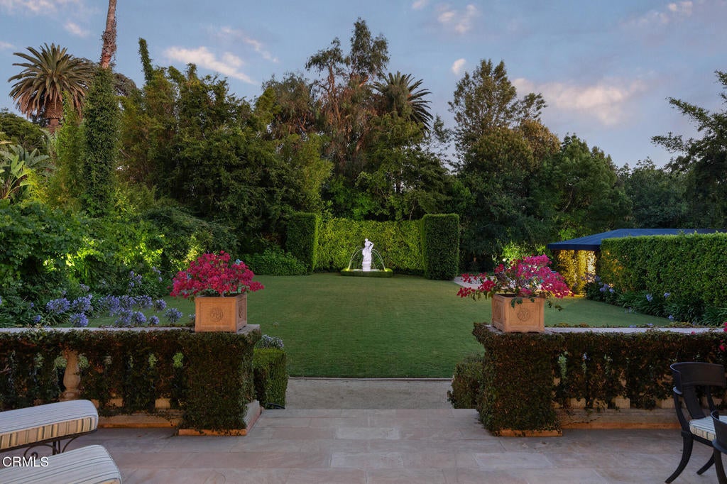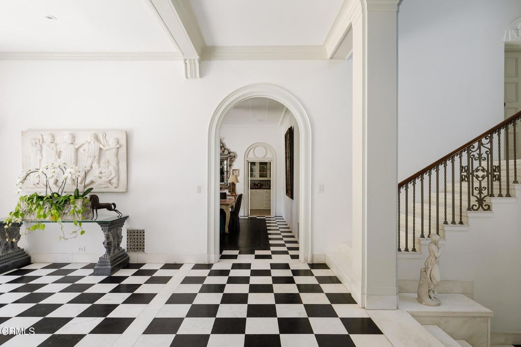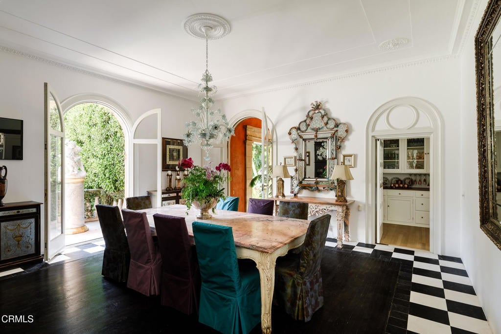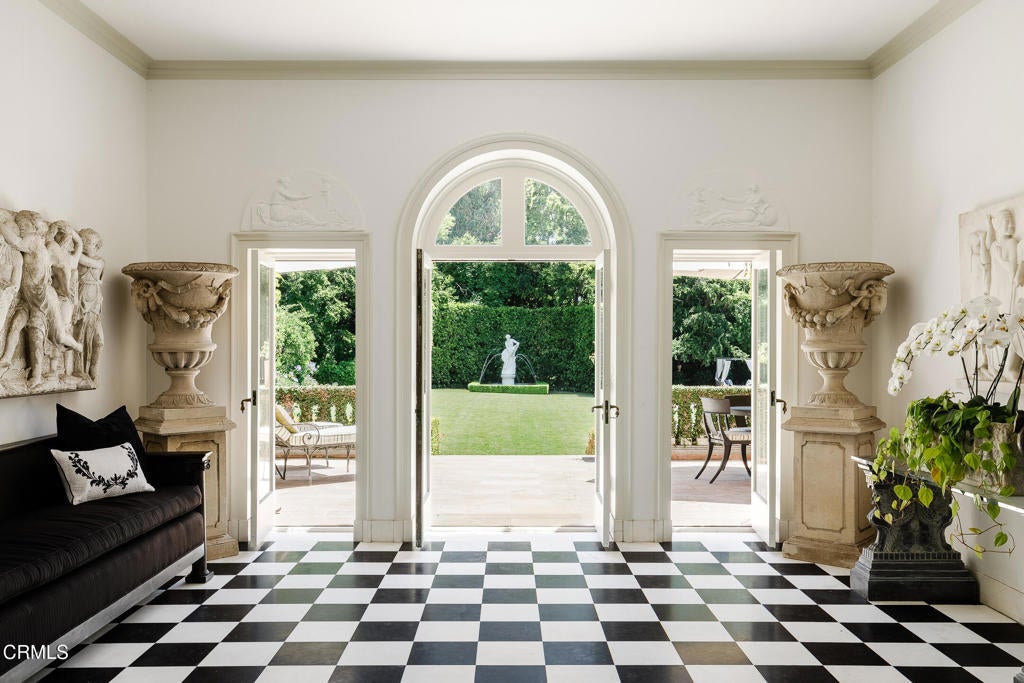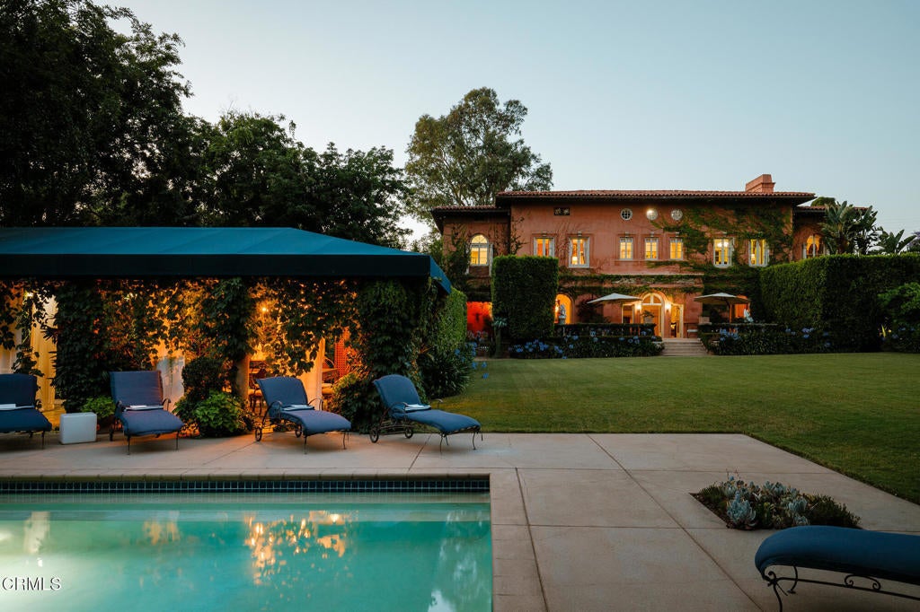 Secluded behind the original estate walls, noted architect Reginald Johnson's masterful recreation of a Tuscan villa is a surprise, sited on a flat one acre parcel in the quiet South Arroyo neighborhood of Pasadena and South Pasadena. Belying the ease of quick accessibility to downtown Los Angeles, Pasadena, and freeways giving universal access to LA's network, the property offers a convenient retreat from our busy world. The Italian Renaissance Revival villa is structured with inspiring historic detail, the work of original craftsmen brought from Italy to ensure old world quality. The double doors to the two-story entry hall lead to an initial gathering space with classical columns, scaled impressively for formal gatherings, while the honed marble floors and warm woods are equally comfortable with today's barefoot indoor outdoor lifestyle. Owned by Pasadena luminaries for nearly a century, the 5-bedroom, 5-bathroom primary residence features voluminous space and height throughout with tall Palladian doors and windows filling the rooms with beautiful light and air. Formal living room and adjoining library - both with fireplaces, and a formal dining room all have direct access to outdoor patios, captivating gardens and the expansive lawn beyond. Warm, inviting chef's kitchen with casual seating area and an adjacent butler's pantry, back kitchen storage/mudroom, separate laundry room, two bedrooms and bathroom complete the lower level. The second level is divided into two distinct zones accessed from the central landing. Luxurious primary suite - with separate bedroom, dressing and sun rooms and walk-through closet and bath. Opposite is an additional bedroom suite with bath ensuite and adjoining sitting room, as well as another large bedroom with bathroom and closet ensuite. Sequestered one bedroom guest house with living room anchored by a fireplace, kitchen, bedroom and bath - all surrounded by its own hedged gardens. Swimmers pool, spacious pavilion, spa retreat, hidden rose garden and dining area with fireplace and grill. Lushly landscaped with sweeping lawn, mature specimen trees, grape arbor, secluded refuges and several fountains. Generous parking area includes carport for multiple vehicles.