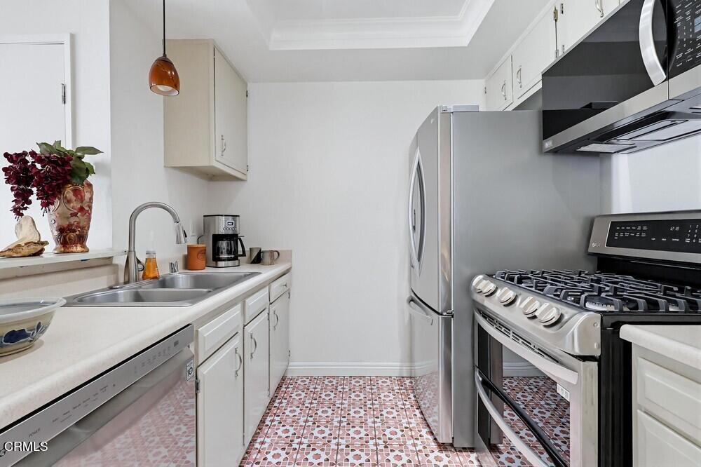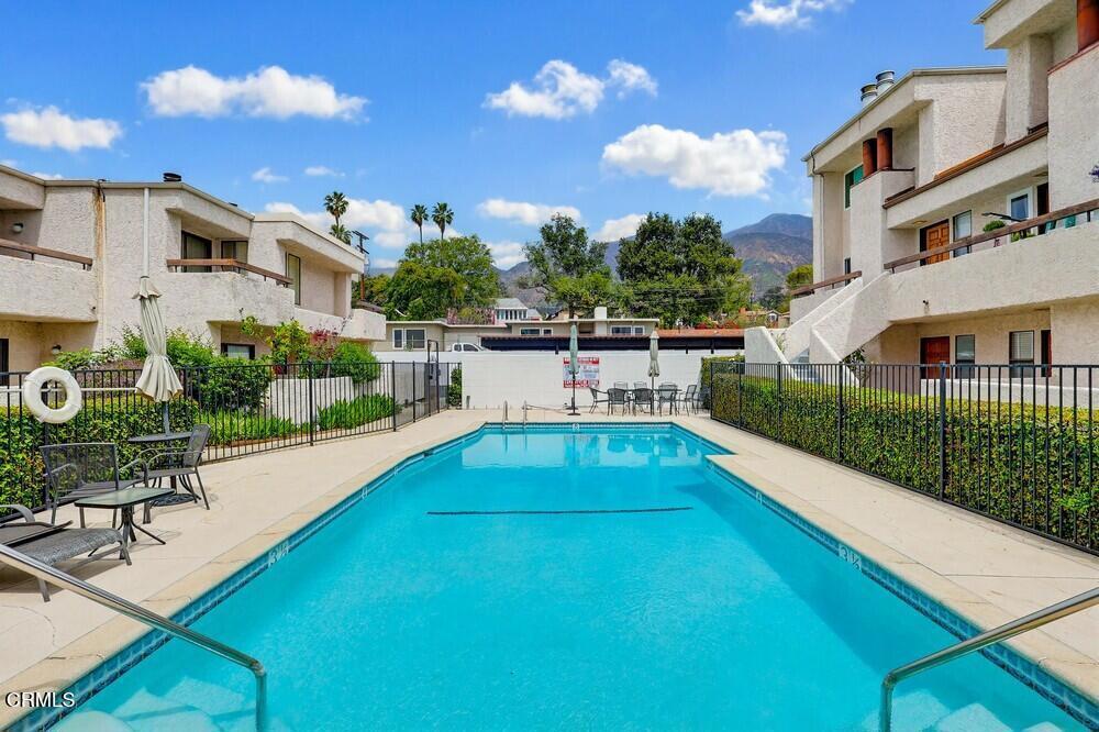Nestled in the sought-after Pine Ridge community, this light-filled two-story end-unit townhouse is a rare gem. Boasting an open floor plan and 822 square feet of thoughtfully designed living space. The spacious living room has a sliding glass door that opens to a large private patio, ready for entertainment. The informal dining area is adjacent to the kitchen. The home comes equipped with sleek LG stainless steel appliances, including a gas stove, refrigerator, microwave, dishwasher, and a convenient one-unit washer/dryer--everything you need for modern living. Inside the laundry closet is a combo washer/dryer. The spacious bedroom is a dream come true, with a sitting area and fireplace that can also be used as an office. Imagine starting your day with mountain views from the serene balcony off the bedroom or hosting friends on the charming patio just off the living room.Of the 44 units in Pinecrest, only eight are townhomes, offering unparalleled privacy with no neighbors above or below. Several of the photos have been virtually staged. One covered designated parking space #8. There is guest parking in the complex. Perfectly positioned near Pasadena, with easy access to transportation, Farnsworth Park, hiking trails, and major freeways, this home places you right in the heart of Altadena's exciting revitalization. Here's your chance to be part of its vibrant history.Welcome to Pine Ridge Condominiums--where comfort meets an extraordinary lifestyle.