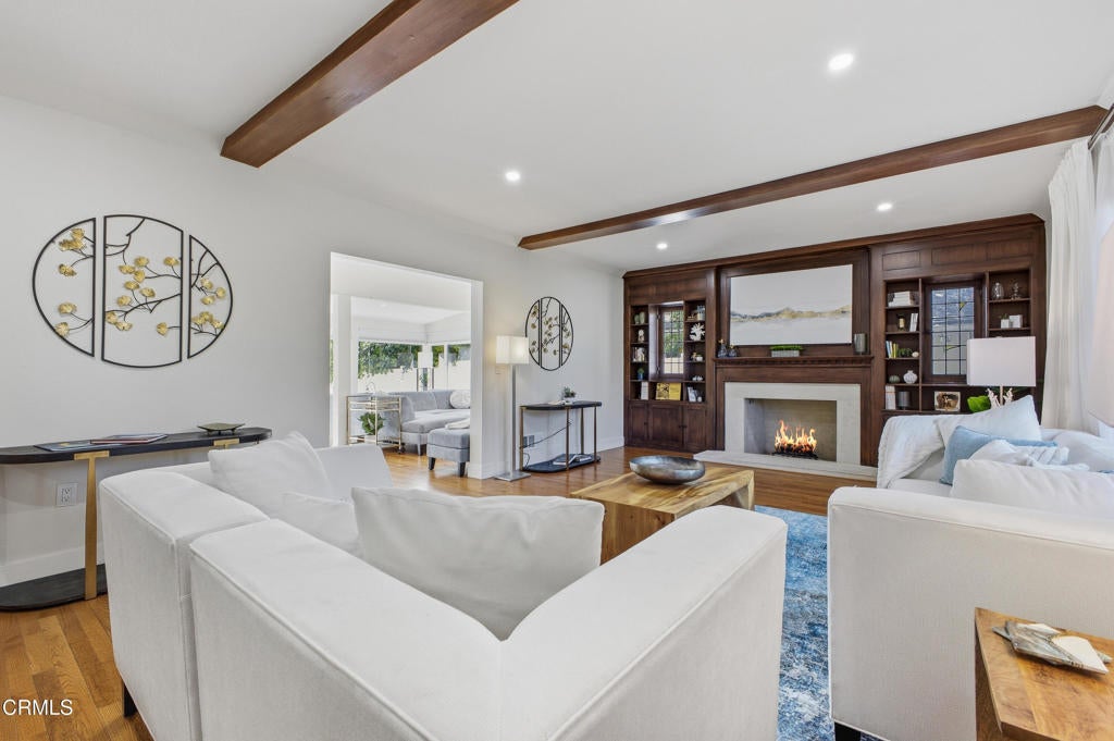 Set on a picturesque, tree-lined street in Pasadena, 380 S Parkwood Ave blends timeless architecture with elevated, modern living. This storybook-style residence makes an immediate impression with its manicured landscaping, classic lines, and inviting covered entry.Inside, the living room is both refined and welcoming, featuring rich hardwood floors, a statement fireplace framed by custom built-ins, and exposed ceiling beams that lend warmth and architectural depth. Natural light pours into the adjoining sitting area, offering a seamless extension of the living space--perfect for sophisticated entertaining or relaxed everyday living.The kitchen is thoughtfully updated with crisp cabinetry, stainless steel appliances, and generous prep space, creating a clean, functional environment that caters to both casual meals and more curated gatherings.Throughout the home, a curated blend of original character and tasteful upgrades provides a sense of understated luxury, with a layout that feels both intentional and comfortable.Outdoors, the grounds offer a private, serene setting surrounded by greenery--ideal for al fresco dining, weekend lounging, or quiet mornings at home. A covered carport and extended driveway provide added convenience without compromising the home's charm.Ideally located near Pasadena's beloved shops, dining, and local amenities, this residence presents a rare opportunity to enjoy classic appeal with a more elevated, move-in ready feel.