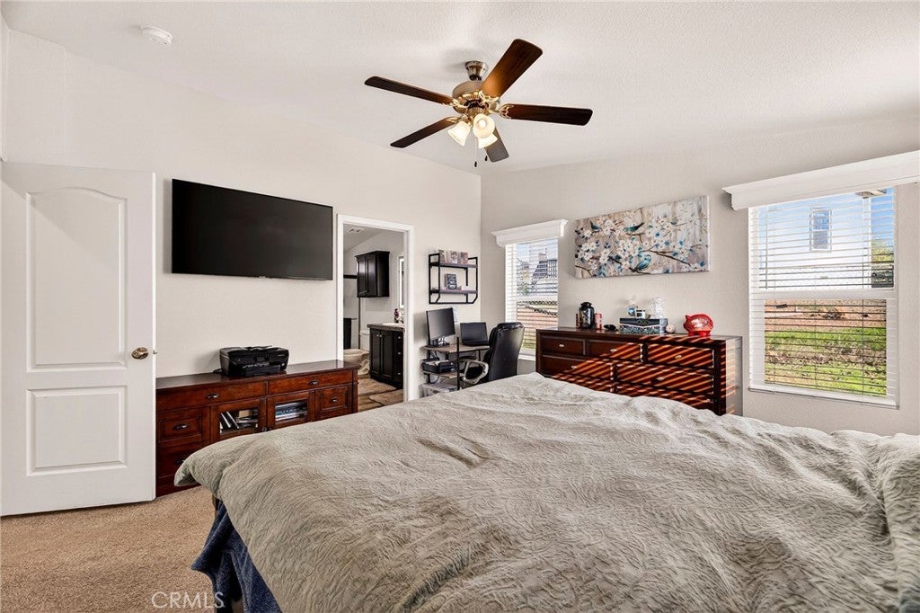 Ceiling Fan(s), Eat-in Kitchen, Living Room Deck Attached, Walk-In Closet(s), Bedroom on Main Level, Laminate Counters, Main Level Primary