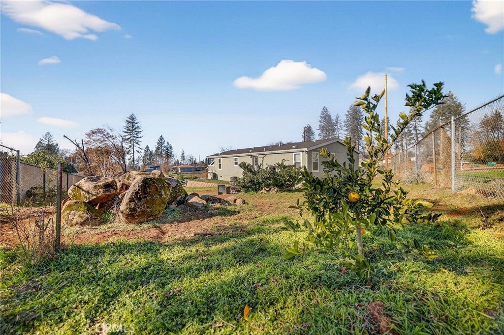 Tucked away at the end of a cul-de-sac, this beautiful 3-bedroom, 2-bath home is full of upgrades and room to let your creativity soar. Step inside to a spacious living area with recessed lighting and a ceiling fan, seamlessly flowing into an open-concept kitchen. Admire the authentic tile backsplash, large island, generous storage, and gas stove—plus, the refrigerator stays! Down the hall are two guest bedrooms with ample closet space, and a large laundry room with extra storage or space for a deep freezer. Additional hallway cabinets provide even more storage. The guest bath offers a tub/shower combo for versatility. The primary suite boasts a walk-in closet, ceiling fan, and bathroom with a walk-in shower, dual sinks, lighted mirrors, and elegant tile work. Outside, a sliding glass door leads to a spacious composite deck with stunning sunset views. The fenced backyard includes a drive-through gate, and the property is enhanced with orange, peach, maple, redwood, and oak trees. With newer gutters, underground utilities, extra parking, and RV hookups, this home truly has it all.