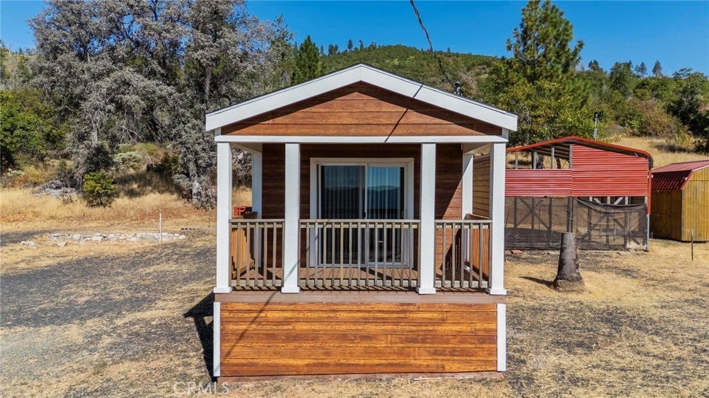 Escape the hustle and bustle and discover the beauty of Northern California living on this incredible 15.11-acre property, offering expansive views of t Escape the hustle and bustle and discover the beauty of Northern California living on this incredible 15.11-acre property, offering expansive views of the Feather River Canyon, and surrounding mountains, this peaceful property is a rare gem in Northern California. This modern yet modest 2-bedroom, 2-bath home, built in 2020, boasts a smartly designed open floor plan inside 720 sq. ft. Enjoy your morning coffee or unwind with an evening drink on the deck overlooking postcard-worthy landscapes—views you won’t find anywhere else. The home’s interior offers high-efficiency design, newer finishes, and a bright, welcoming ambiance. The open living room and kitchen combo maximizes space and flow, while large windows frame the breathtaking outdoors and fill the home with natural light. The kitchen features ample cabinetry and prep space, ideal for both everyday cooking and entertaining. You’ll appreciate the interior laundry area, two well-appointed bathrooms, and comfortable bedrooms with tranquil views and plenty of privacy. This home offers all the essential comforts with a minimalist footprint, ideal for low-maintenance living. Outside, you'll love the extra features: a large 4+ detached garage, perfect for storing multiple vehicles, setting up a workshop, or creating a hobby space. There's also a covered carport and storage shed, giving you all the flexibility and storage you need for rural living. The location is truly unbeatable—tucked away in a peaceful and secluded setting, yet close to everything you need: the Feather River, fishing spots, swimming holes, mountain lakes, hiking and biking, and even nearby shopping and dining. It’s a lifestyle that combines self-sufficiency with accessibility. Whether you're downsizing, escaping the city, or seeking an off-grid type lifestyle with modern comfort, this home delivers the best of both worlds. Schedule your showing and fall in love with the views, the land, and the lifestyle.