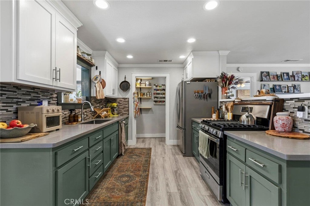 Ceiling Fan(s), Crown Molding, Recessed Lighting, Bedroom on Main Level, Main Level Primary, Primary Suite, Utility Room, Walk-In Pantry, Track Lighting