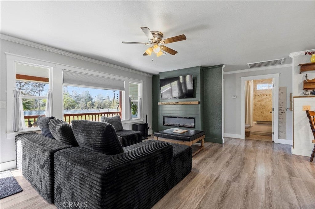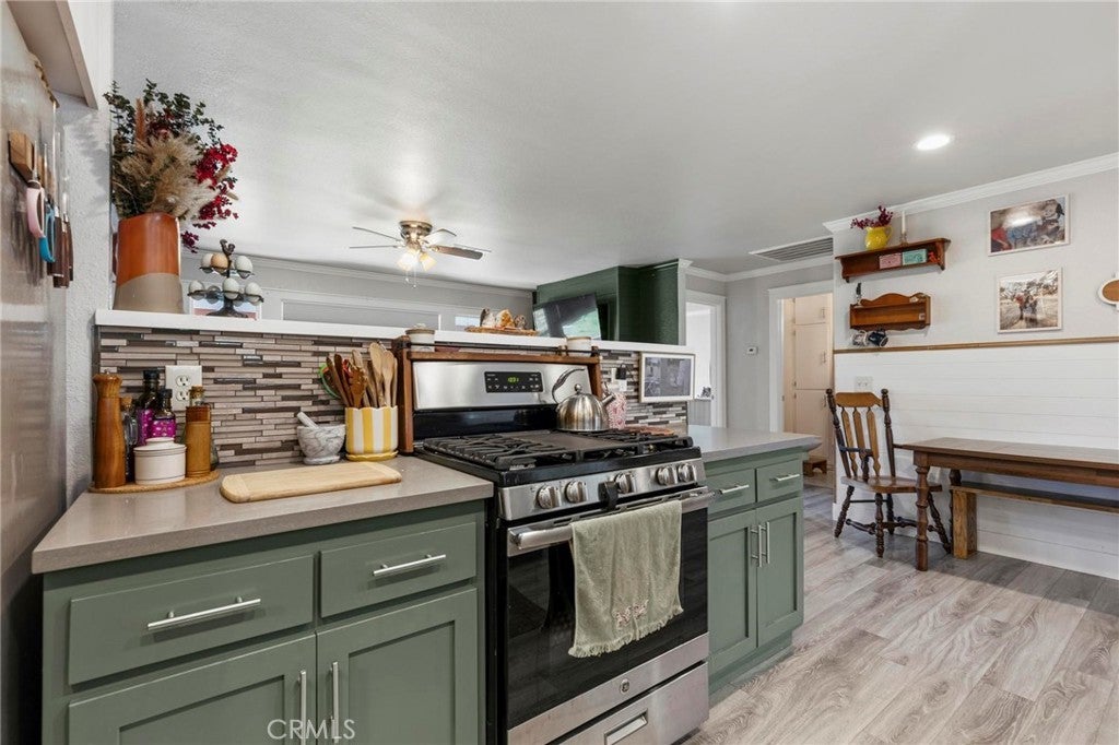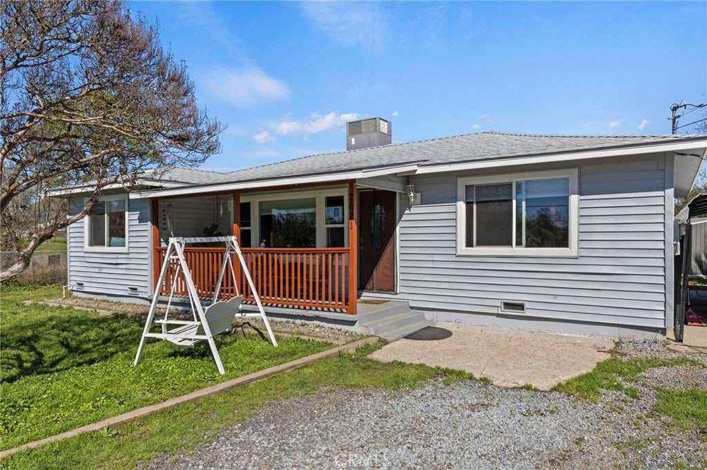 Welcome home to comfort, character, and room to roam. Situated on a spacious 0.60-acre corner lot, this remodeled 3 bedroom, 2 bath home offers approximately 1,310 square feet of inviting living space with modern updates throughout. The kitchen is designed for everyday living and entertaining, featuring quartz countertops, a gas range, dishwasher, and a generous walk-in pantry. The adjacent dining area opens into the cozy living room, where an electric fireplace creates a warm focal point. Recessed lighting, crown molding, ceiling fans, and dual pane windows enhance both style and energy efficiency. The split-bedroom floor plan provides privacy, with the primary suite set apart as a relaxing retreat. Enjoy a custom walk-in tiled shower, double sink vanity, and additional storage space designed for convenience. Outdoor living truly shines here. The covered front porch welcomes you in, while the backyard patio offers space for gatherings, barbecues, or peaceful evenings under the open sky. With 0.60 acres, there’s ample room for gardening, recreation, pets, or future possibilities. A newer roof, storage shed, carports, mud room, central heat and air, and tankless water heater complete the package. Located just minutes from the lake, river, bike trails, parks, shopping, dining, and a variety of outdoor activities, this property delivers the perfect balance of small-town charm and active lifestyle convenience. Space, upgrades, and location come together in this beautifully maintained home.