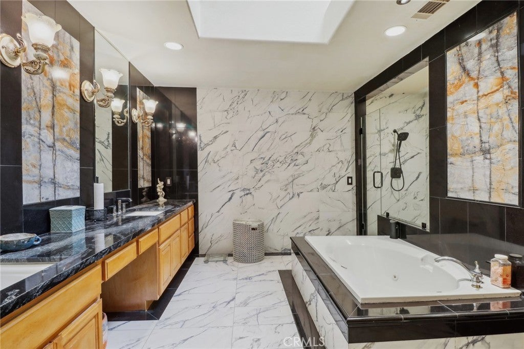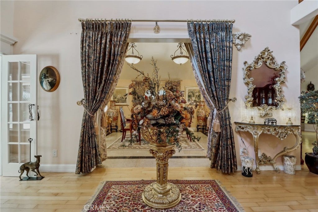 Designed by a Celebrity – A Masterpiece of Elegance and Distinction, set in the prestigious gated community of "The Country" in Diamond Bar, this remarkable German-style manor is a true architectural gem. Meticulously rebuilt between 2000 and 2002, and thoughtfully remodeled from 2020 to 2022, the home harmoniously blends timeless craftsmanship with modern luxuries. Encompassing approximately 7,660 square feet of exquisite living space, this 7 bedroom, 7.5 bath estate sits on a flat lot in the scenic foothills - one of the most coveted locations in the area. Elegant, inspiring, and distinctive design elements are showcased throughout, from the grand entry and sweeping staircase to the sophisticated finishes and intricate architectural details. High ceilings enhance the open and airy ambiance across the expansive main living areas. The home is ideal for both grand-scale entertaining and peaceful retreat, offering dual gourmet kitchens (Western and Chinese), a wet bar, sauna, gym space, meditation room, and a serene courtyard featuring a beautiful elephant fountain. Five of the seven bedrooms are en-suite and thoughtfully distributed across two levels, offering comfort and privacy for all. A flexible 928-square-foot loft space adds further versatility - ideal as a home office, media room, or creative studio. The 3-car garage ensures ample space for parking and storage. "The Country" community emphasizes privacy, luxury, and security, with 24-hour guarded access, regular security patrols, and resort-style amenities including hiking and equestrian trails, a heated pool, tennis courts, and a clubhouse. This is more than a home - it's a rare opportunity to live in a work of art, thoughtfully crafted and infused with elegance at every turn.