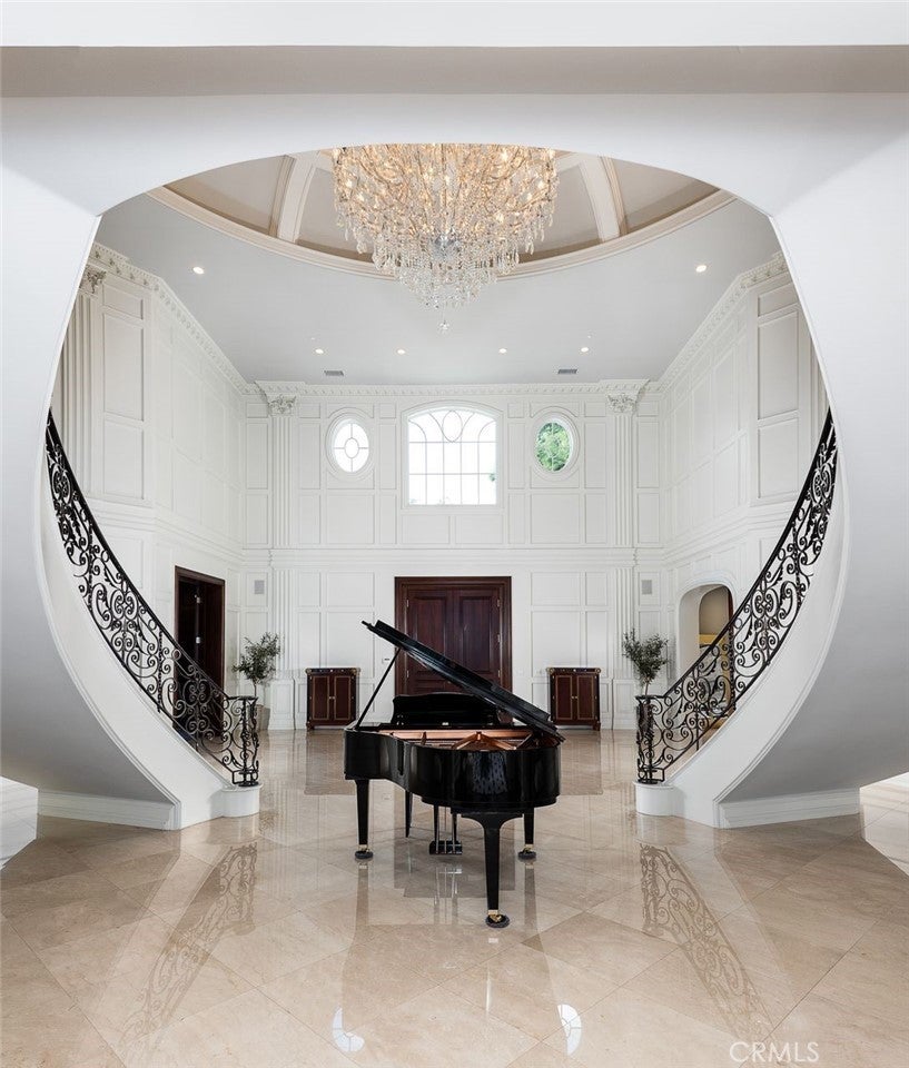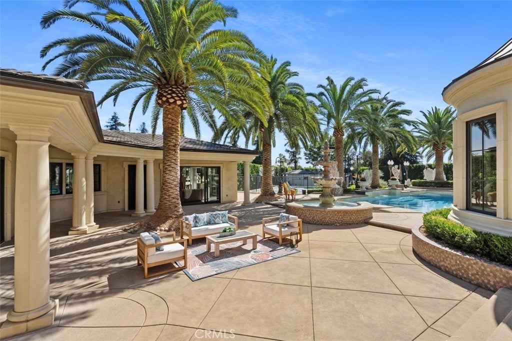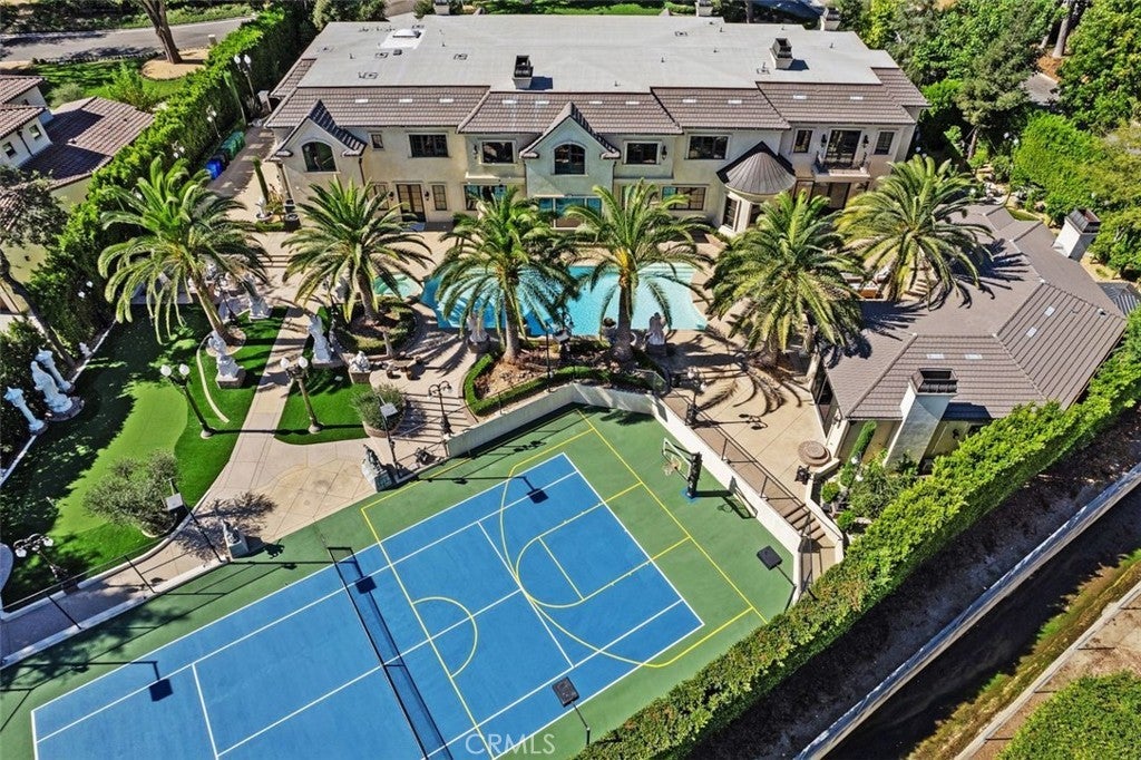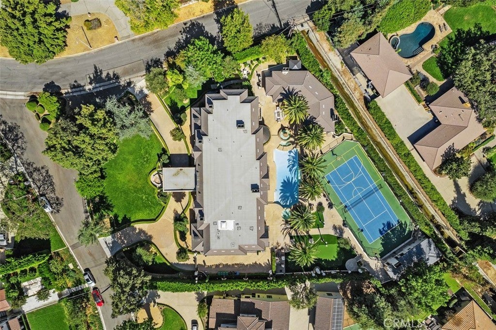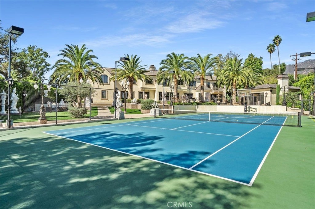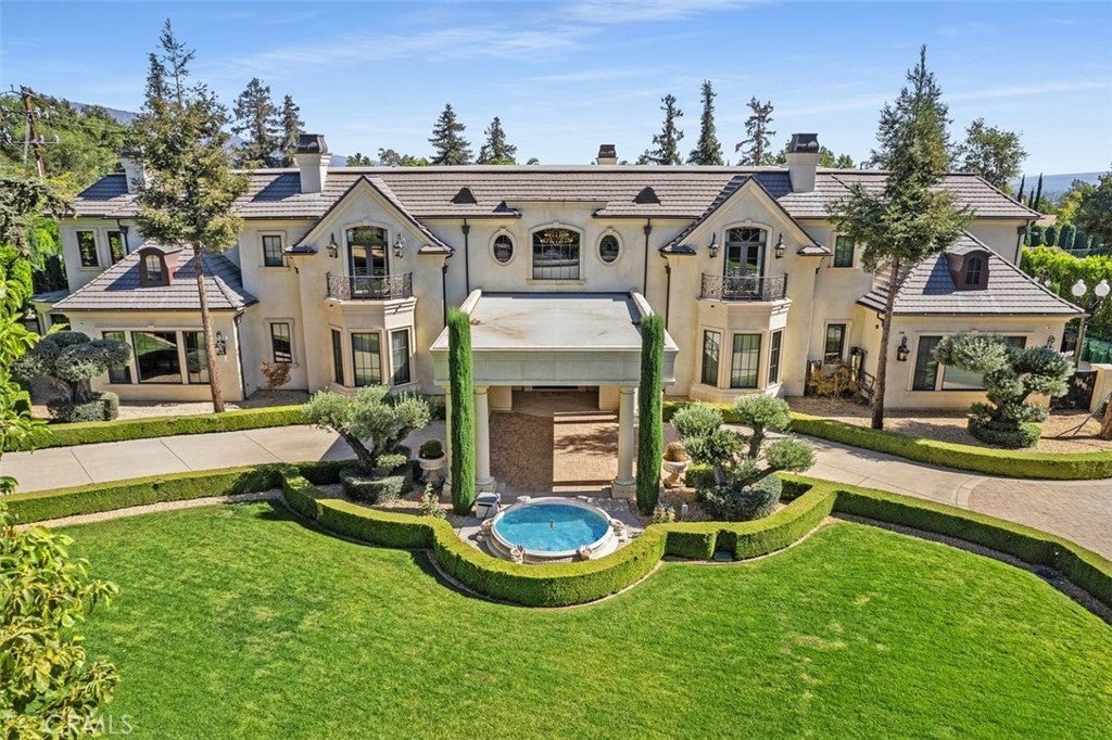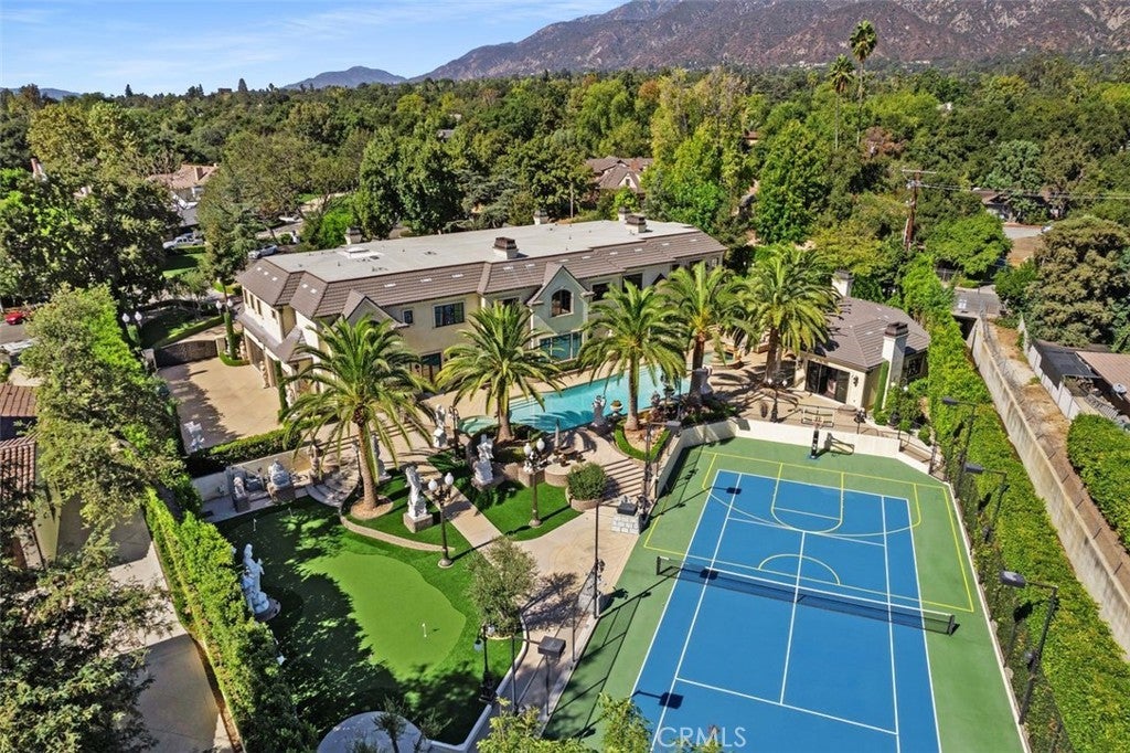 Welcome to this beautiful home located in the highly sought-after Upper Rancho area of Arcadia. Set on a generous corner lot of over an acre, this property offers exceptional curb appeal with its inviting circular driveway and porte-cochère. Step inside to a spacious foyer featuring high ceilings, an impressive chandelier, and a striking double spiral staircase. The elegant inlaid marble floors and tasteful wall panels create a warm and welcoming atmosphere. This 7-bedroom home, designed by renowned architect Robert Tong and built by Mur-sol Construction, is perfect for families or those who love to entertain. The lush landscaping features a golf paddle area, six towering king palms, and a variety of mature trees, making the outdoor space both beautiful and functional. The backyard is adorned with impressive marble and stone sculptures, adding a touch of sophistication. Enjoy the best of California living with outdoor amenities that include a full-size tennis court, a swimming pool and spa, an en-suite guesthouse, and a large covered sitting area complete with a built-in BBQ and fireplace. An additional 800 sq. ft. Accessory Dwelling Unit (ADU) offers flexibility for guests, or a private retreat. The main level boasts a formal dining room, an elevator, a cozy home theater, a guest bathroom, and two en-suite bedrooms. The open-concept chef’s kitchen is a highlight, complete with an oversized marble island, a wok kitchen with Wolf appliances, and a comfortable breakfast area that overlooks the sparkling pool, spa and a fountain. Perfect for entertaining, the home also features a game room, wet bar, and a customizable wine room. Upstairs, you’ll find four spacious en-suite bedrooms, a lounge area with an additional fireplace, and a luxurious master suite with two spacious closets, a private sitting room, and a balcony showcasing stunning mountain views. The spa-inspired master bathroom provides a serene escape. Don’t miss this opportunity to own a remarkable home that seamlessly blends comfort, style, and outdoor beauty in the heart of Arcadia!