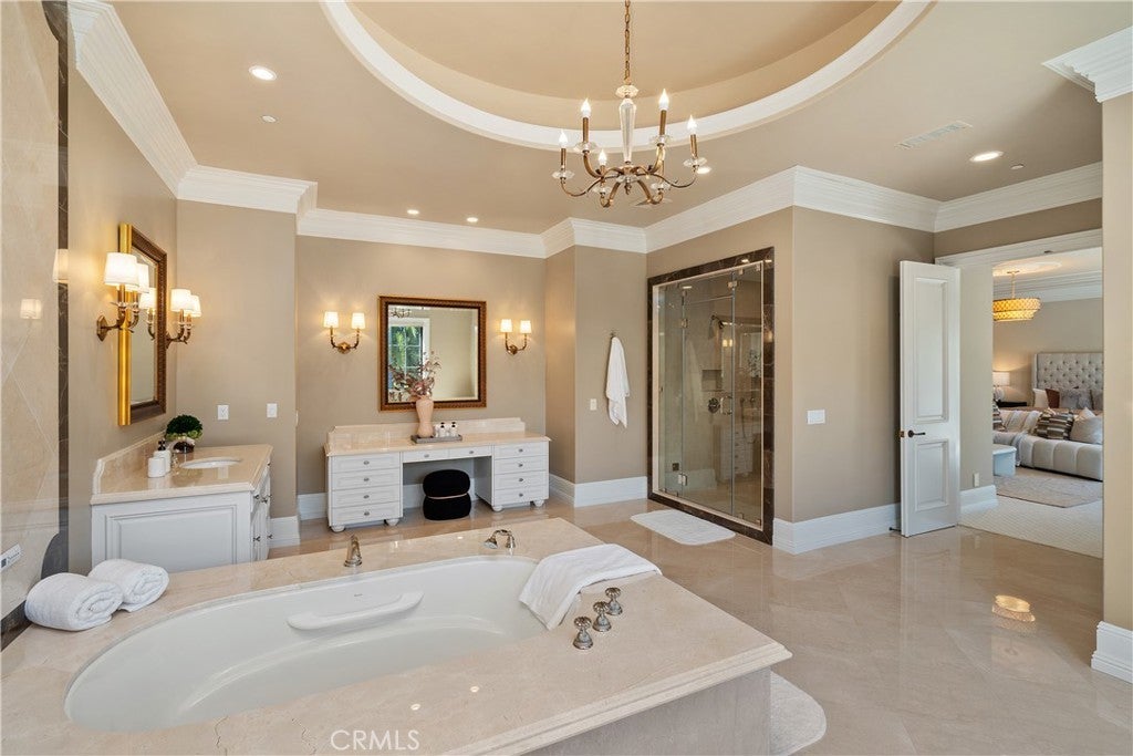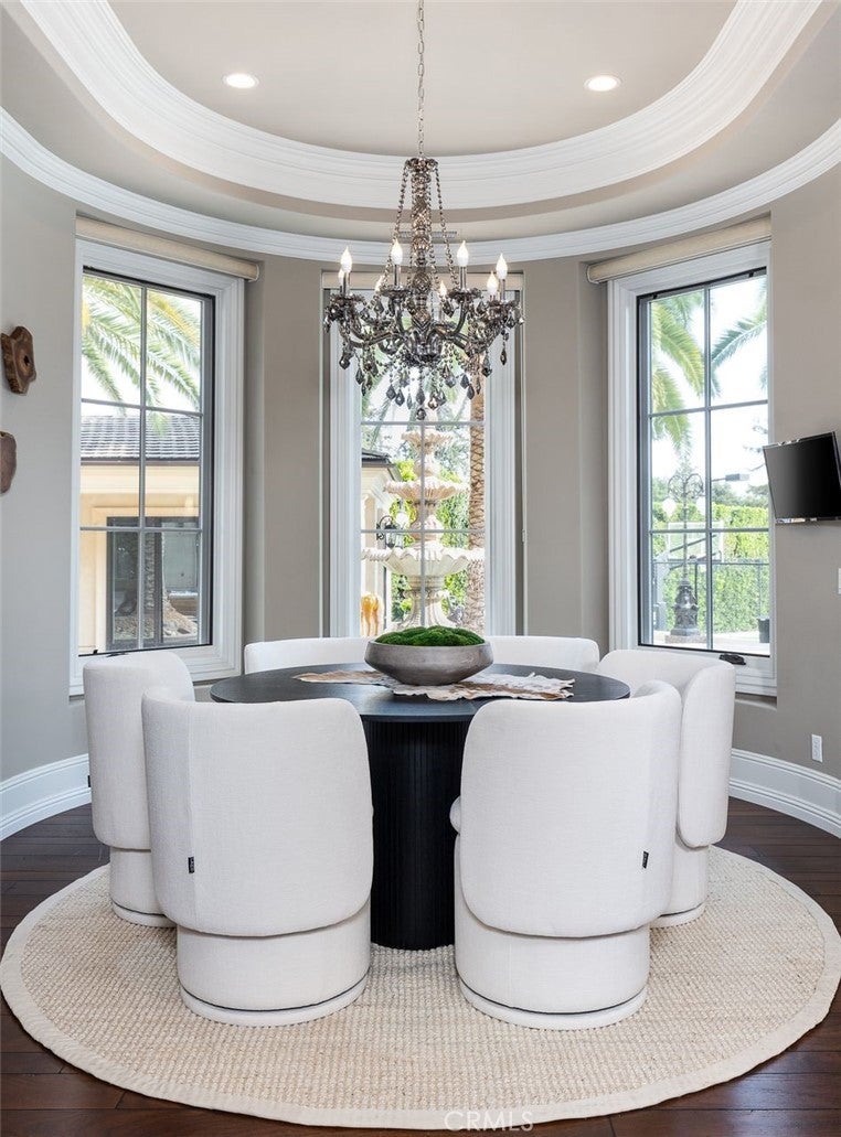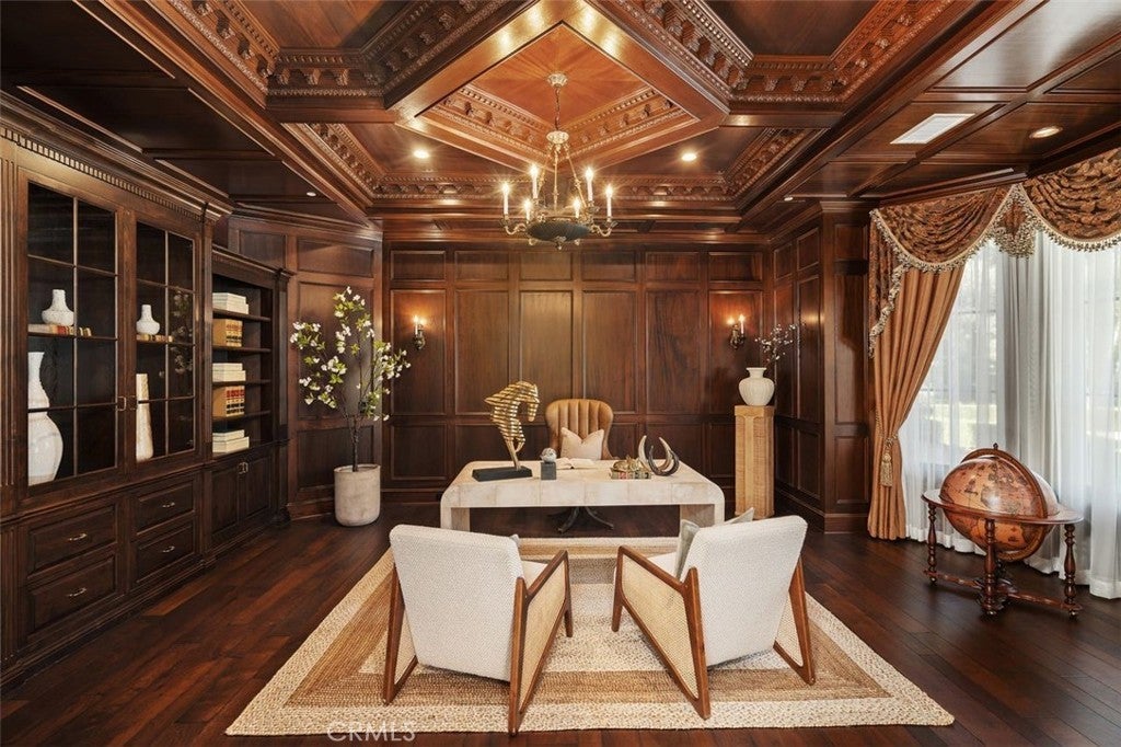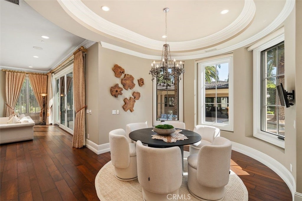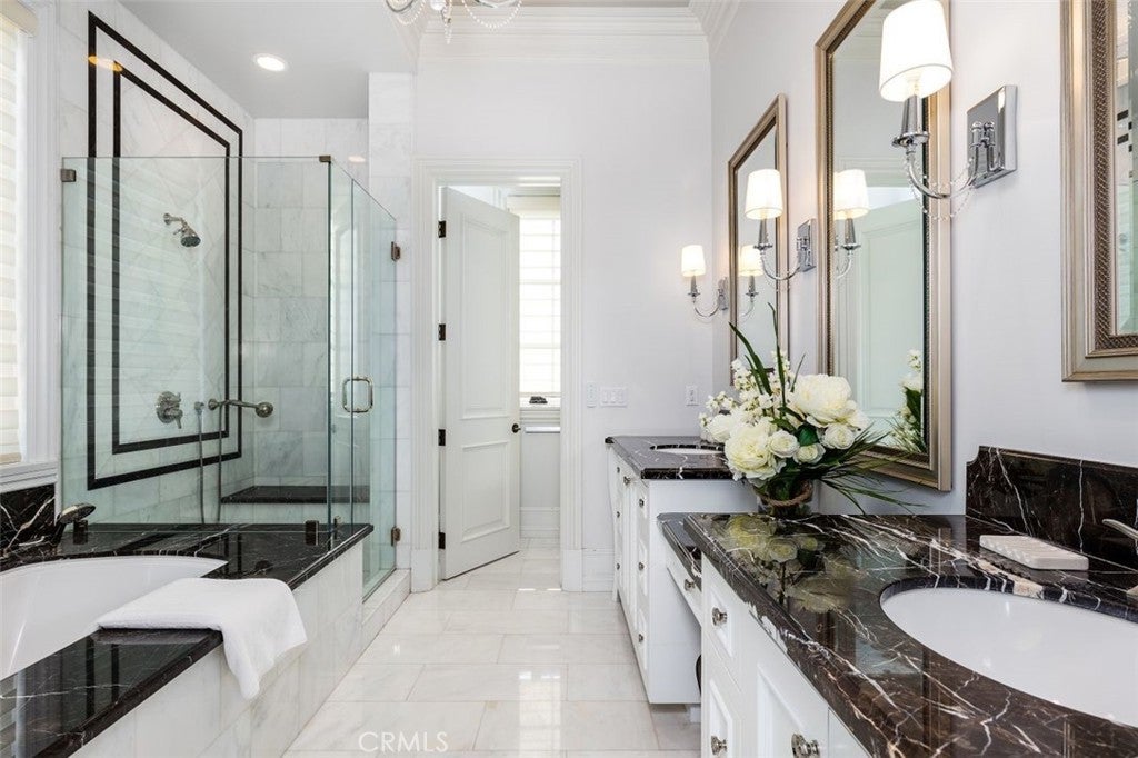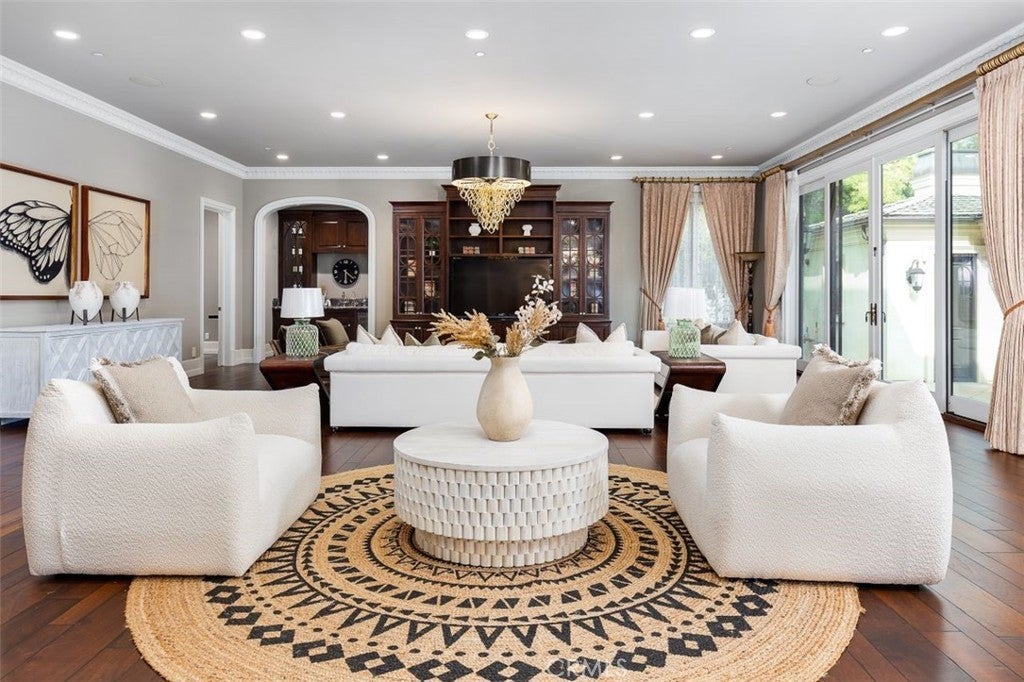 Welcome to this beautiful home located in the highly sought-after Upper Rancho area of Arcadia. Set on a generous corner lot of over an acre, this property offers exceptional curb appeal with its inviting circular driveway and porte-cochère. Step inside to a spacious foyer featuring high ceilings, an impressive chandelier, and a striking double spiral staircase. The elegant inlaid marble floors and tasteful wall panels create a warm and welcoming atmosphere. This 7-bedroom home, designed by renowned architect Robert Tong and built by Mur-sol Construction, is perfect for families or those who love to entertain. The lush landscaping features a golf paddle area, six towering king palms, and a variety of mature trees, making the outdoor space both beautiful and functional. The backyard is adorned with impressive marble and stone sculptures, adding a touch of sophistication. Enjoy the best of California living with outdoor amenities that include a full-size tennis court, a swimming pool and spa, an en-suite guesthouse, and a large covered sitting area complete with a built-in BBQ and fireplace. An additional 800 sq. ft. Accessory Dwelling Unit (ADU) offers flexibility for guests, or a private retreat. The main level boasts a formal dining room, an elevator, a cozy home theater, a guest bathroom, and two en-suite bedrooms. The open-concept chef’s kitchen is a highlight, complete with an oversized marble island, a wok kitchen with Wolf appliances, and a comfortable breakfast area that overlooks the sparkling pool, spa and a fountain. Perfect for entertaining, the home also features a game room, wet bar, and a customizable wine room. Upstairs, you’ll find four spacious en-suite bedrooms, a lounge area with an additional fireplace, and a luxurious master suite with two spacious closets, a private sitting room, and a balcony showcasing stunning mountain views. The spa-inspired master bathroom provides a serene escape. Don’t miss this opportunity to own a remarkable home that seamlessly blends comfort, style, and outdoor beauty in the heart of Arcadia!