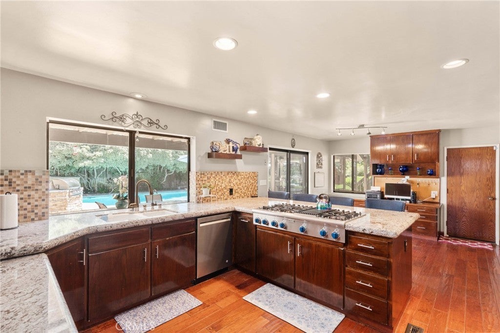 Resort-Style Living in Stockdale Estates – Pool, Privacy & Endless Charm! Welcome to your private retreat in one of Bakersfield’s most sought-after neighborhoods! Tucked away at the end of a peaceful cul-de-sac, this 4,979 sq. ft. home sits on an expansive 16,000+ sq. ft. lot and offers the perfect blend of space, style, and comfort. Step inside to soaring vaulted ceilings, a dramatic living room with exposed beams, a cozy fireplace, and even a drop-down movie screen — an entertainer’s dream! The chef’s kitchen is ready for gatherings with granite countertops, a 6-burner stove + grill, and Subzero fridge. Upstairs, the loft and oversized bedrooms provide room for everyone, while the primary suite is a true escape with dual balconies, a spa-like bathroom, and generous walk-in closet. Outside, you’ll find your very own resort: sparkling pool, tranquil pond, lush grassy areas, fruit trees, and a built-in BBQ for year-round entertaining. Bonus spaces include a sunroom, office, and gym — offering flexibility for any lifestyle. All this, just minutes from parks, shopping, restaurants, CSUB, and Stockdale Country Club. Even better — you’ll enjoy Bakersfield’s best firework views right from your backyard! Don’t miss this rare opportunity to own a one-of-a-kind Stockdale Estates gem. Schedule your private tour today — this home is priced to move and ready for its next chapter!