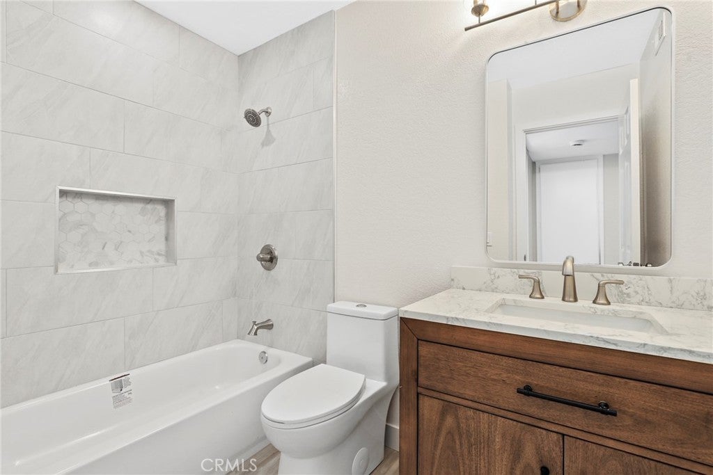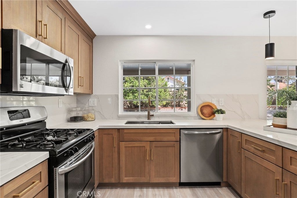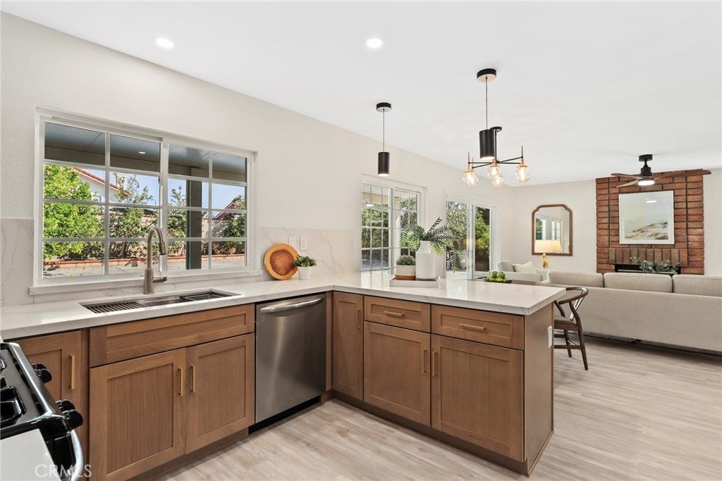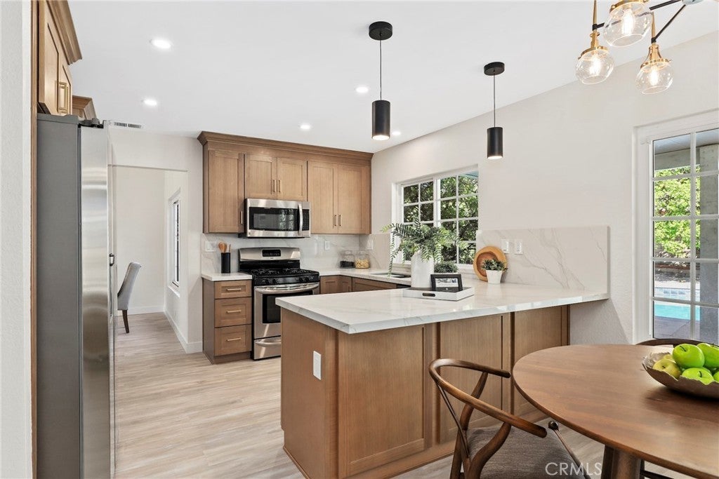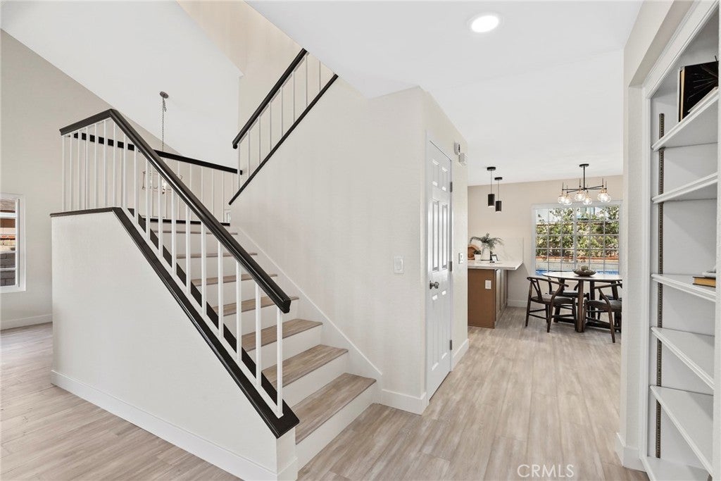 Beautifully Remodeled Home in a Peaceful Neighborhood This fully renovated single-family home is tucked away in a quiet, desirable neighborhood and offers a spacious, flexible layout with 4 bedrooms and 3 bathrooms. Upstairs, a grand room with soaring ceilings can be enjoyed as a playroom, upstairs family room, or easily converted into a 5th bedroom—so many possibilities, making it perfect for large families or anyone who loves extra living space. Property Features Grand Living Room: Double-door entry and dramatic ceilings create a bright, open, and welcoming atmosphere. Thoughtful First-Floor Layout: One bedroom and one full bathroom on the main level are perfect for guests or multigenerational living. Modern Upgrades Throughout: Brand-new kitchen, fully remodeled bathrooms, new interior doors, fresh paint inside and out, updated flooring, and modern light fixtures. The stylish kitchen opens to the family room and flows seamlessly to the backyard oasis. Resort-Style Pool Area: Recently re-plastered pool surrounded by a beautifully maintained yard—perfect for entertaining. 3-Car Garage: Plenty of parking and storage space. Outdoor Highlights Level Backyard: Home to multiple mature fruit trees—lemons, oranges, peaches, plums, guavas, and dragon fruit—for fresh harvests year-round. Space to Garden: Perfect for anyone who enjoys cultivating their own greenery. Prime Location Just blocks from the award-winning and highly sought-after Stanley G. Oswalt Academy. Close to parks, walking trails, and elementary schools in a family-friendly community. Tranquil and private setting, yet conveniently close to the amenities Walnut and surrounding areas have to offer. Whether you’re searching for your forever home or a smart investment, this property offers comfort, style, and a prime location—all in one.