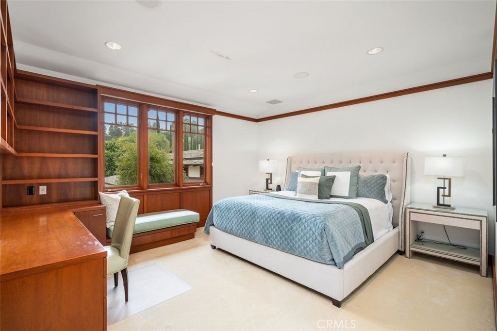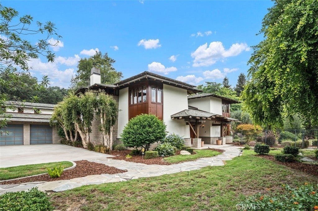 This stunning custom-built contemporary estate masterfully blends American and Chinese traditions, designed by renowned Beverly Hills designer Luis Ortega and architect Steven Ehrlich. The home is set on beautifully landscaped grounds with imported trees and plants, a serene pond, built-in BBQ, covered patio, patterned stone steps, moss beds, and enchanting mountain views, complemented by expansive frontage and a 5-car garage. A grand double-door entry leads to a dramatic foyer with rich hardwood floors and mullioned windows, while interiors—designed with Feng Shui principles—showcase modern simplicity and elegance. Features include a gourmet kitchen with high-end appliances and a separate wok kitchen, a formal dining room, intimate inglenook, media room, home office, den, indoor exercise pool, and a guest suite on the main level. The Zen-inspired master suite offers a retreat area, walk-in closets, panoramic-view deck, and a luxurious spa bath with limestone tiles and custom shower walls. Genuine mahogany wood throughout enhances the sense of warmth and refinement, making this one-of-a-kind estate a true masterpiece of cultural fusion, elegance, and quality craftsmanship.