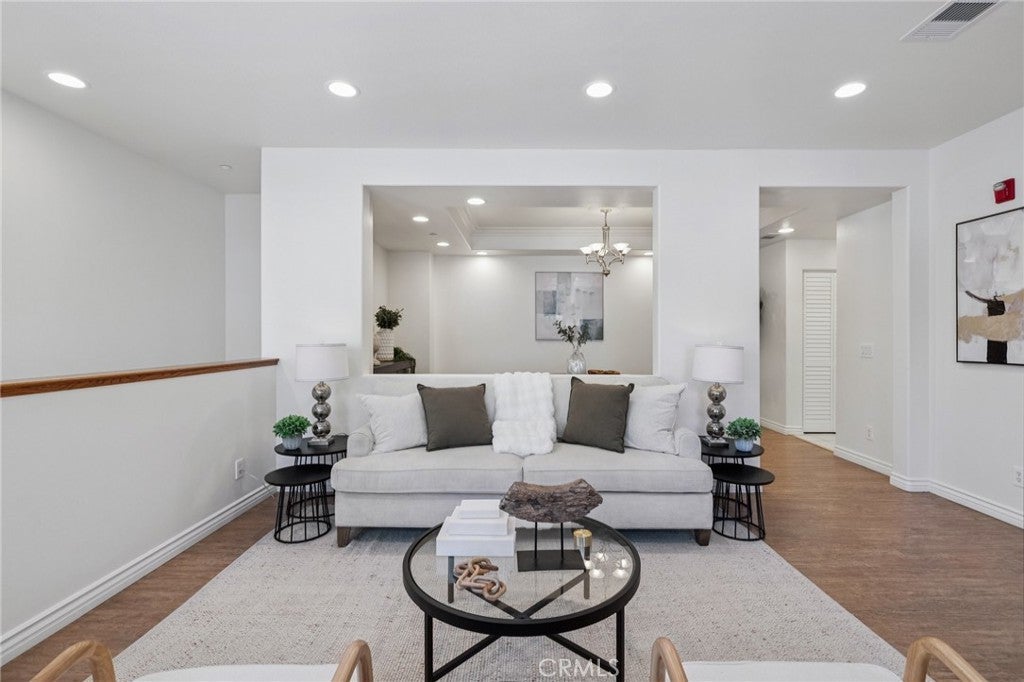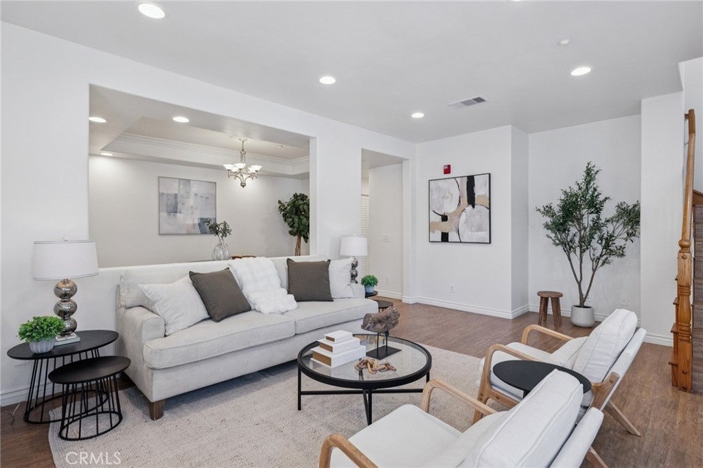 Discover this stylish, move-in-ready end-unit townhome that feels like a single-family residence—ideally situated in one of Arcadia’s most desirable neighborhoods with top-rated schools. The open-concept layout features high ceilings with crown molding, wood and tile flooring throughout, and abundant natural light, perfect for both entertaining and everyday living. The main level includes a spacious living room, formal dining with coffered ceilings, a full bathroom, and a versatile bedroom—ideal for guests or multi-generational living. The well- appointed kitchen boasts stainless steel appliances, granite countertops, matching backsplash, and ample cabinetry. A full-sized washer and dryer are conveniently located in a dedicated laundry nook. Upstairs, the expansive primary suite with balcony and mountain views impresses with coffered ceilings, dual walk-in closets, and a luxurious ensuite bath with a jacuzzi. Two additional rooms—one a large bedroom and the other a flexible bonus room with balcony and mountain views (ideal as a 4th bedroom or home office)—share a full hallway bath. All bathrooms are updated with granite vanities, sleek glass shower doors, and modern fixtures. The attached two-car garage includes extra storage and a Level 2 EV charger. Enjoy enhanced privacy, a generous backyard ideal for an urban-garden and BBQs. Centrally located near Arcadia schools, shopping, dining, golf, and major commuter routes—this is a home you don’t want to miss. Schedule your private tour today!
