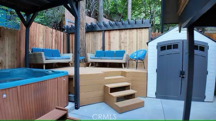 Nestled among the towering pines of the San Bernardino National Forest, this charming mountain cabin sits on two adjoining lots totaling nearly 10,000 square feet of land. Blending comfort, nature, and convenience, the property offers a peaceful escape just minutes from Lake Arrowhead Village, Lake Gregory, Big Bear, SkyPark at Santa’s Village, and the historic Tudor House. From the moment you arrive, the colorful canopy of trees and park-like surroundings set the tone for a truly relaxing retreat. Perfect for weekend getaways with family and friends, the grounds provide generous open space for sledding in winter, birdwatching, yoga under the trees, or outdoor play with loved ones. A wraparound deck connects the expansive front yard to a remodeled backyard oasis, featuring an elevated lounge, BBQ zone, outdoor dining area, jacuzzi pergola, storage shed, and all-new fencing with gated entries. Inside, cozy up by the fireplace, enjoy morning coffee on the deck, or unwind in the hot tub beneath the stars. Every corner of this property has been designed for comfort and connection. Whether you’re seeking a turnkey short-term rental or a property with development potential, this listing offers both. Currently permitted for short-term rental use, the cabin can begin generating income immediately, with most furniture, décor, and appliances included in the sale (a few exclusions apply). The seller is prepared to transfer the brand and business rights associated with the property. Additionally, buyers may explore the option to build a second single-family residence or an ADU (subject to County verification) with ample on-site parking. Water, trash, snow plowing, and road maintenance are conveniently managed by Arrowhead Villas Mutual Services Company (not an HOA). This inviting mountain cottage is ready for its next chapter—whether as a full-time residence, a relaxing weekend getaway, or a high-demand investment property. With its generous land, updated amenities, and prime location in one of Southern California’s most beloved alpine regions, this home offers endless potential and timeless charm. Sale Includes Two Lots: Lot 1 (House): APN 0332-064-29 — 4,800 SF Lot 2 (Vacant): APN 0332-064-29 — 4,838 SF
