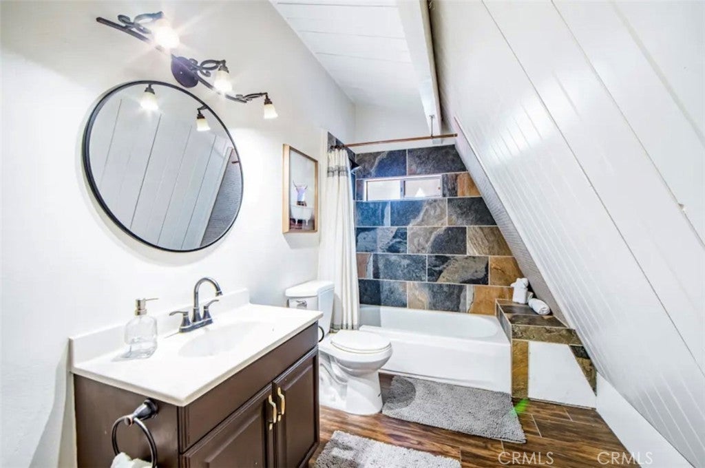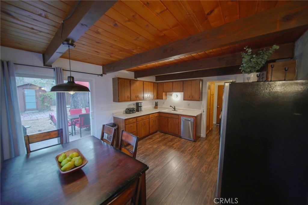 For Lease. Welcome to your Big Bear City retreat, a cozy 3-bedroom chalet that blends cabin charm with practical living space. Upstairs features three bedrooms, a full bath, and a large game room for movie nights, entertaining, or flexible use. Downstairs offers a warm living area with fireplace, a convenient half bath, a kitchen with appliances included, a laundry room, and direct access to the attached 1-car garage. Recent updates include a new downstairs wall heater, a new gas water heater, and a newly fenced yard, ideal for pets and privacy. End the day by the gas fire pit under the stars and enjoy the peaceful mountain setting. Conveniently located near Big Bear snow play, Bear Mountain ski resort, dining, and shopping. The home could be available with or without furniture.