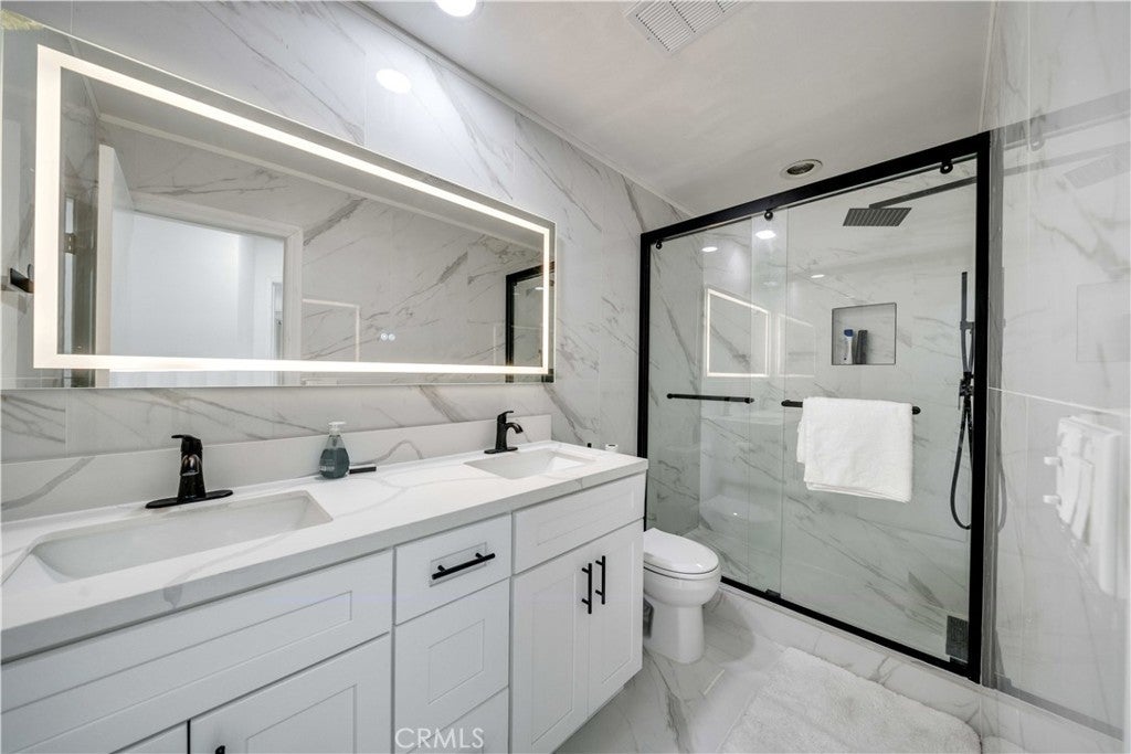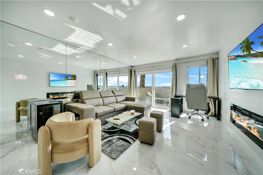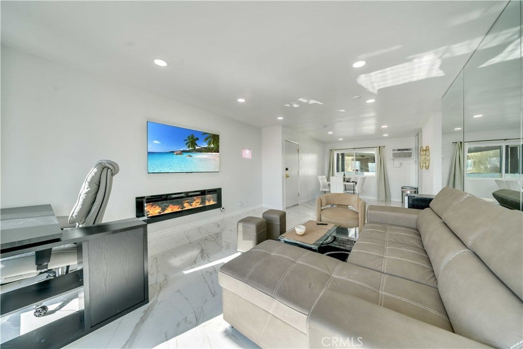Stunning Renovated 2-Bedroom; Top Corner Apartment with Balcony and a Rooftop Terrace, Enjoy Panoramic Skyline Views in Prime West Hollywood. Live in luxury in the best unit of this top corner residence in the heart of West Hollywood! This newly renovated top-floor corner apartment features beautiful new marble-style floors, a modern kitchen, new high-quality double-pane windows, new air conditioning, a brand-new shower, a luxurious new bath tub, stylish new furniture, and new paint. Enjoy breathtaking views of the LA skyline and the vibrant city below. Nestled in one of the safest and most desirable neighborhoods, this apartment is perfect for those seeking comfort, style, and convenience. Key Features: Master Bedroom: Spacious room with a California King bed, a spa-like en-suite bathroom featuring a new spa tub and smart LED mirror. Second Bedroom: Cozy double bed, perfect for guests or a home office, complete with a work desk and ergonomic massage chair. The modern bathroom includes a new sleek shower and another smart LED mirror. Living Room: Relax in the open-plan living space with a brand-new sectional sofa (convertible into a sofa bed) and a 65-inch flat-screen TV for movie nights. Kitchen: Fully equipped with new modern appliances, perfect for cooking up your favorite meals. Outdoor Space: Private balcony with panoramic views of downtown LA and West Hollywood, ideal for morning coffee or evening relaxation. Community Amenities: Enjoy the shared swimming pool and hot tub, plus access to a rooftop terrace with unbeatable city views. Parking: Two side-by-side parking spaces are included, offering convenience and ease. Comfort: Stay cool with air conditioning and enjoy peace and quietness thanks to high-quality double-pane windows. Location Highlights: Just two miles from Beverly Hills. The Comedy Store and Sunset Blvd are right behind the apartment (just walk up a flight of stars), offering easy access to entertainment. Situated in the heart of West Hollywood, within walking distance to top restaurants, shops, and entertainment. Easy access to public transportation and major freeways. This is an unbeatable opportunity to experience LA living at its finest. Don’t miss out on this rare gem! Contact us today to schedule a viewing!