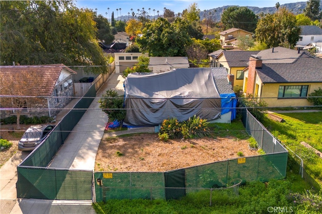 Exceptional opportunity on a large Altadena lot offering significant development and investment potential. The property was affected by high winds during the Eaton fires, resulting in a tree falling onto the front house, which is currently uninhabitable. Notably, the front house underwent a major renovation in 2024, and approved plans are available, providing a valuable head start for rebuilding. According to county planning, the expansive lot is eligible for two 2-story homes, each with its own ADU, allowing for up to 9,000 square feet of total living space. This makes the property an outstanding opportunity for an owner-builder, developer, or investor seeking to maximize value. The rear house is a charming and livable 1923 cottage, featuring 1 bedroom and 1 bathroom, a kitchen, living area, and laundry room. Updates include a renovated bathroom (2019), heat pump system, and a Miele dishwasher—blending vintage character with modern convenience. A finished 2-car garage offers exceptional flexibility and is ideal for a studio, workspace, or creative use. Highlights include a split-system HVAC, polished concrete floors, insulated walls and ceiling, vaulted ceiling, and high north-facing windows that provide beautiful, diffused natural light. Two pairs of French doors open to serene yard views. The sloped roof’s angle and orientation are optimized for future solar panel installation. The property features generous front, middle, and rear garden spaces with mature trees, including avocado, mango, camellia, and bay. The bay trees form a tall, natural hedge, offering privacy and a peaceful setting. A long driveway accommodates parking for up to four vehicles. A rare chance to restore, rebuild, or redevelop a property with strong fundamentals, approved plans, and remarkable long-term potential in a desirable Altadena neighborhood.