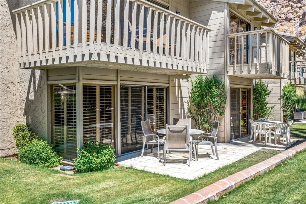 Experience refined desert living in this beautifully appointed 2 bedroom, 2 bath condo in prestigious Mountain Cove, Indian Wells. Nestled beneath the breathtaking Santa Rosa Mountains, this home offers stunning views and a serene backdrop for desert living. Offered fully furnished with exquisite Kreiss furniture, this residence combines elegance with comfort in every detail. The open concept living room, dining and kitchen spaces are filled with natural light and flow seamlessly to private patios, perfect for entertaining or everyday living. Sliding glass doors from the living room to the outdoor patio creates an incredible ambiance for indoor outdoor living and alfresco dining. The living room has a sleek TV setup, plush seating couches and a cozy fireplace creating the perfect blend of comfort and style. The dining room table can comfortably seat six and more sliding glass doors to the BBQ patio where outdoor grilling can take place. The kitchen is well equipped with a refrigerator, oven/range top, brand new dishwasher and microwave. Plenty of counter space with room for serving or barstools for casual eating. Next to the kitchen is an extra-large laundry room with a brand-new washer and dryer, overhead cabinets and room for more shelving or storage. The owner’s primary bedroom is designed as an inviting retreat with a king size bed and nightstands, a huge walk-in closet and sliding glass doors to an outdoor patio where you can enjoy your favorite morning and evening beverage. The ensuite bathroom showcases granite countertops, a custom-made vanity, expansive shower tub combo and a private water closet for ultimate privacy and comfort. The 2nd bedroom is also an inviting retreat with sliding glass doors to the patio atrium and tons of light coming through. There is ample closet space for all your clothes and shoes and access to an ensuite bathroom. The 2nd bathroom with a custom furniture vanity and a nice size walk in shower round out the interior of this amazing condo. The sophisticated furnishings and thoughtful design make this home fully turnkey and move-in ready. The patios overlook gorgeous rolling lawns and trees, and the heated community pool is just a few steps away. As a resident of Indian Wells, enjoy a 20% discount at select restaurants, spas and hotels and a discounted golf rate at the Indian Wells Country Club. The Indian Wells Tennis Garden is nearby as well as the El Paseo shopping and restaurants. ~ Welcome Home ~
