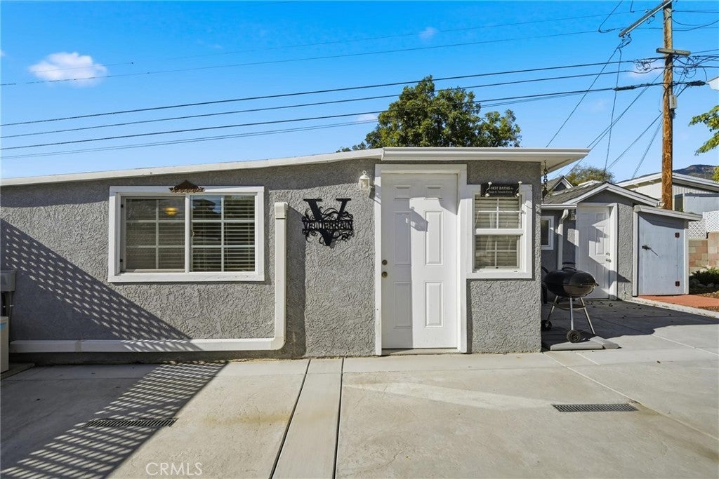 A charming covered front porch and yard greet you as you enter into the great room of this home with the living, dining and kitchen spaces. With plantation shutters to control the light, this great room is perfect for gatherings of all sizes. The kitchen features granite counters, stainless appliances, 5 burner gas stove, double oven and large island. Down the hallway are 2 bedrooms, guest bathroom and laundry area. At the back of the house is a primary suite with fireplace and en suite bathroom and an additional room perfect for a home oUice or play space. A lovely attached covered patio completes this home. Behind the main house is a non-attached building with a professionally built non-working kitchen area, bathroom, bedroom and living space. The water and gas are no longer attached to this unit, it possibly could become housing for family members, separate home oUice or as an ADU. Attached to this unit is a large storage room and shed perfect for yard supplies.