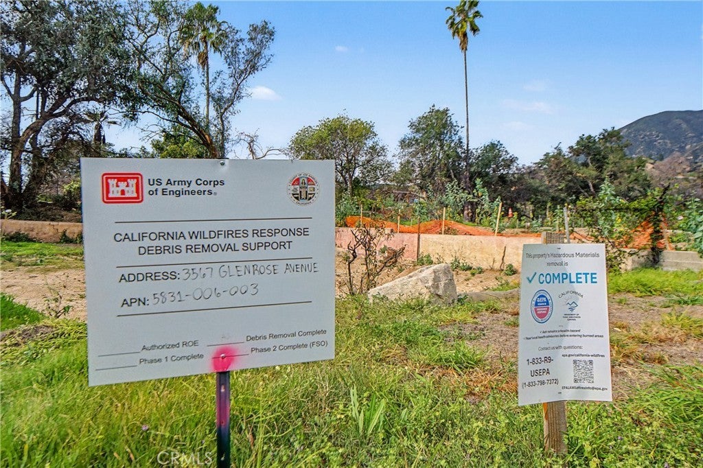 Exceptional Opportunity to Build in Beautiful Altadena. Rare opportunity to create your custom home on a beautiful 7,100 sq ft flat lot in one of Altadena’s most desirable neighborhoods, featuring spectacular mountain views and a peaceful residential setting. The previous single-story home (3 bedrooms, 2 baths, approximately 1,696 sq ft) was lost in the Eaton Fire. Phase 2 debris removal has been professionally completed by the U.S. Army Corps of Engineers, providing a significant head start for future development. This property offers an ideal canvas for buyers looking to rebuild and design a home tailored to their vision, while remaining close to Altadena’s natural beauty, trails, and community amenities.