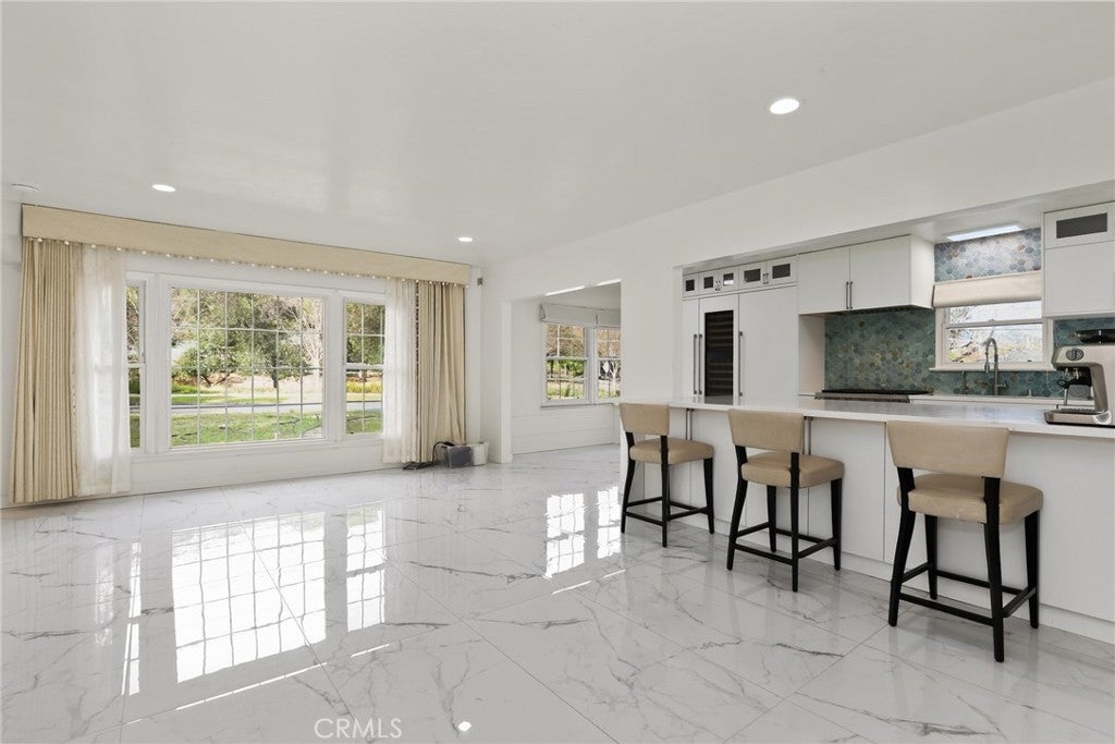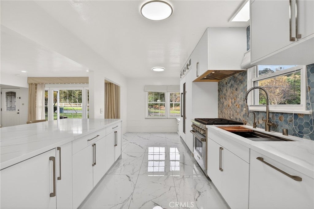 This amazing retreat is where refined design meets effortless Southern California living. Set on an expansive 13,800-square-foot flat corner lot, this beautifully maintained pool home offers a rare blend of privacy, space, and opportunity. From the moment you step inside, the home feels incredibly light and open as sunlight pours through large dual-pane windows, illuminating thoughtfully curated finishes and creating a warm, elevated atmosphere throughout. The recently remodeled kitchen is the heart of the home, featuring high-end Wolf appliances, sleek modern design, and a seamless connection to the dining area and spacious family room. This space opens to a large, tree-covered patio—perfect for morning coffee, quiet relaxation, or lively gatherings. Step outside to discover a private backyard sanctuary designed for both relaxation and entertaining. The expansive flat outdoor space is framed by lush landscaping, including an orange tree, and a cherry blossom. Spend sun-soaked afternoons by the sparkling pool or host unforgettable evenings under the stars in this tranquil setting. Significant recent upgrades enhance both beauty and peace of mind, including fresh interior and exterior paint, remodeled bathrooms, updated flooring, a newer water heater, an upgraded electrical panel, and premium dual-pane windows. The location is truly unbeatable for outdoor enthusiasts, situated directly across from a scenic walking, biking, and equestrian trail that leads to the impressive Royal Oaks Park. There, you can enjoy tennis and pickleball courts, basketball, and a modern playground. Perfectly located near highly rated schools, scenic hiking trails, and vibrant dining, this home offers the ideal balance of a quiet retreat and modern convenience. With easy access to freeways and public transportation, this is a rare opportunity to own one of the most desirable properties in the neighborhood.