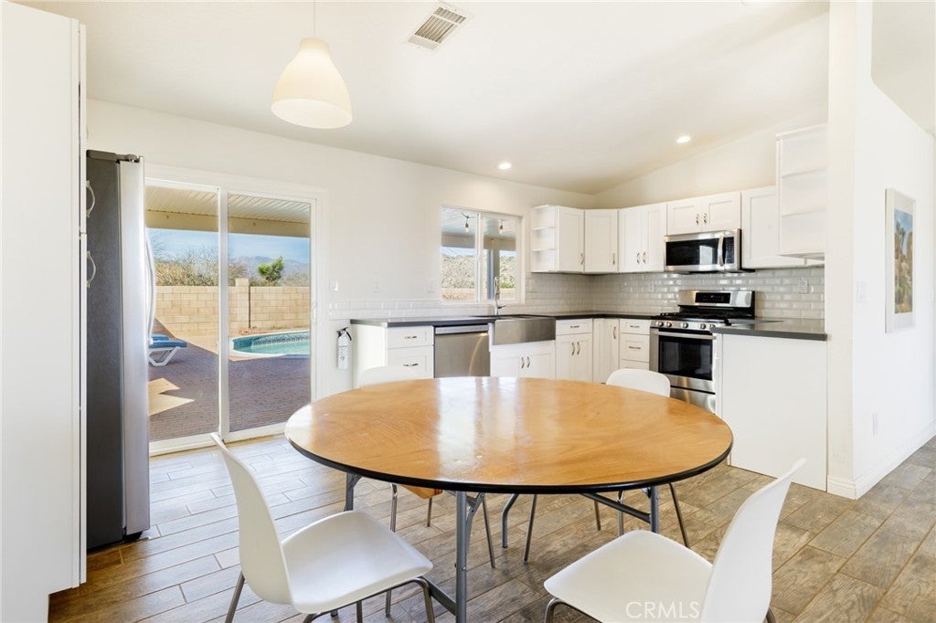 Located in the serene desert city of Yucca Valley, adjacent to Joshua Tree, secluded from the city but close to businesses, local stores & restaurants, breathtaking views in every direction from outside/inside the house, starry nights and city lights, plenty of driveway and garage parking, open living room, dining area and kitchen, all with high ceilings, laundry room, office (or 4th bedroom) and an attached garage that is set up as a yoga/exercise studio, main bedroom with a view and an attached bath, two hallway bedrooms with large closets and views, hallway bath, huge linen closet, central heat and air and a swamp cooler, pool with seating and dining, a second rear RV garage also with a swamp cooler, desert backyard, was a successful airbnb for two years and a rental for two years, option to purchase furnishings, secluded, huge lot, nearby hiking and off roading trails, come see a great home in a great location.