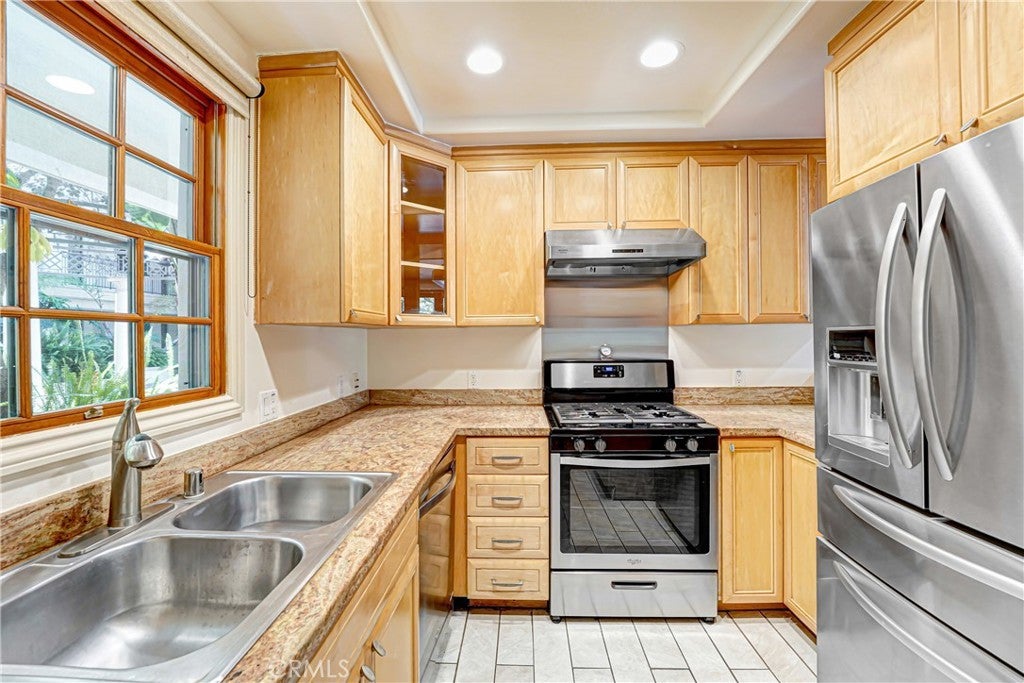 Experience refined living in this elegant 2-bedroom, 2-bath residence at Gardens on Hill, a premier Mediterranean-style community in the heart of Pasadena. From the moment you enter through the impressive Romanesque iron gates and travertine-clad entrance, you’re welcomed into beautifully landscaped courtyards with winding pathways and a striking central pavilion adorned with intricate ironwork. Inside, the home offers a bright and airy living space enhanced by 9-foot ceilings, crown molding, recessed lighting, and a custom 8-foot French door that invites in natural light. A brick accent façade and a beautifully crafted stone fireplace add warmth and architectural character, creating an inviting setting for both everyday living and relaxed entertaining. The gourmet kitchen is thoughtfully designed with granite countertops, stainless steel appliances, and custom maple cabinetry, offering both style and functionality. The primary suite serves as a peaceful retreat, complete with a designer bathroom featuring custom vanity with dual sinks and a spacious walk-in shower. A versatile second bedroom provides flexibility for guests, a home office, a gym, or additional creative space. Recent updates include brand new flooring, fresh interior paint, and updated ceiling fans, giving the home a clean, modern feel throughout. Additional highlights include two side-by-side parking spaces and a private storage unit in the garage. The community has also been recently improved with a newer roof and earthquake insurance, offering added peace of mind. Located just moments from the Metro, shopping, the charm of Old Town Pasadena, Pasadena City College, and Cal-Tech, this residence is perfect for discerning buyers seeking luxury, convenience, and the best of Pasadena living. *Some photos are virtually staged*