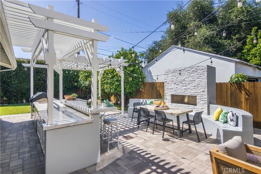 Nestled in the exclusive Studio area of Burbank, this large and impressive home has 4 Bedrooms, 4 Baths, step down Living Room with with a sophisticated Fireplace and Bay Window seat, that exude elegance and relaxation ready to enjoy. The incredible eat-in Kitchen has an artistic quartzite island,where you can taste the the finest wines, and sample sizzling food prepared in the gourmet, high end appliances, including an induction range. The maple cabinets have pull-out drawers, a walk in pantry, and a security camera that displays guests visiting from outside the home. There are 2 Primary suites, both with baths, and both with walk in Closets. The Primary Bedroom has both a "His and Her" walk in closets: There is an Office, Formal Dining room, Laundry room with an additional refrigerator, Family room with built-in cabinetry and French doors, that look out into the lush and private garden. The Rear Yard has fabulous features: Full outdoor Quartzite counter top kitchen with a built in gas grill, 2 additional cooking burners, refrigerator, smart TV, luxurious gas fireplace with muti colored night lighting, and built in seating. You can watch the drama of the sunset while grilling, keeping up with your favorite sports score, and pull a fresh Meyer lemon from the tree to enjoy the drink of your choice! This grand home boasts the following features: New Floors, new carpet on the stairs, gorgeous tile, newer central air, new roof, solar panels fully paid for, whole house water softener, wired for Fiber Optic Wifi, an automatic Doggy Door that operates with a collar magnet, double pane windows, the following Fruit Trees: Navel Orange, Meyer lemon, Bearss Lime, Avocado, and more. There is a crazy big 3 Car Garage that could be a studio, gym, extended for an adu (check with the City), and has a 4th parking spot outside the garage. So much space and proximity to studios, restaurants, St. Joseph's Hospital, Providence Schools, this location is a wonderful place to live!