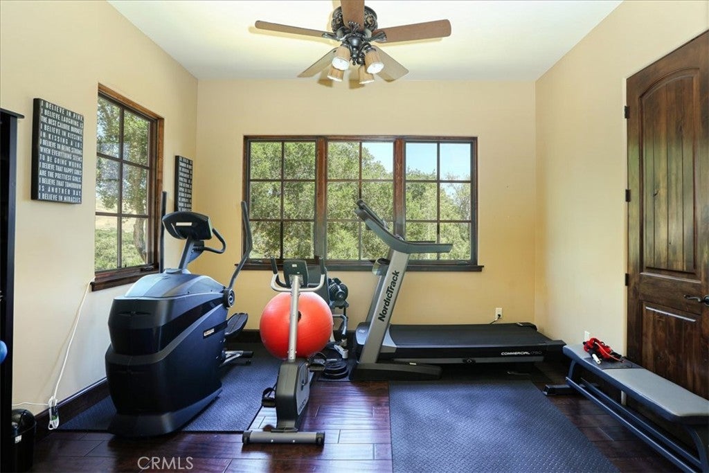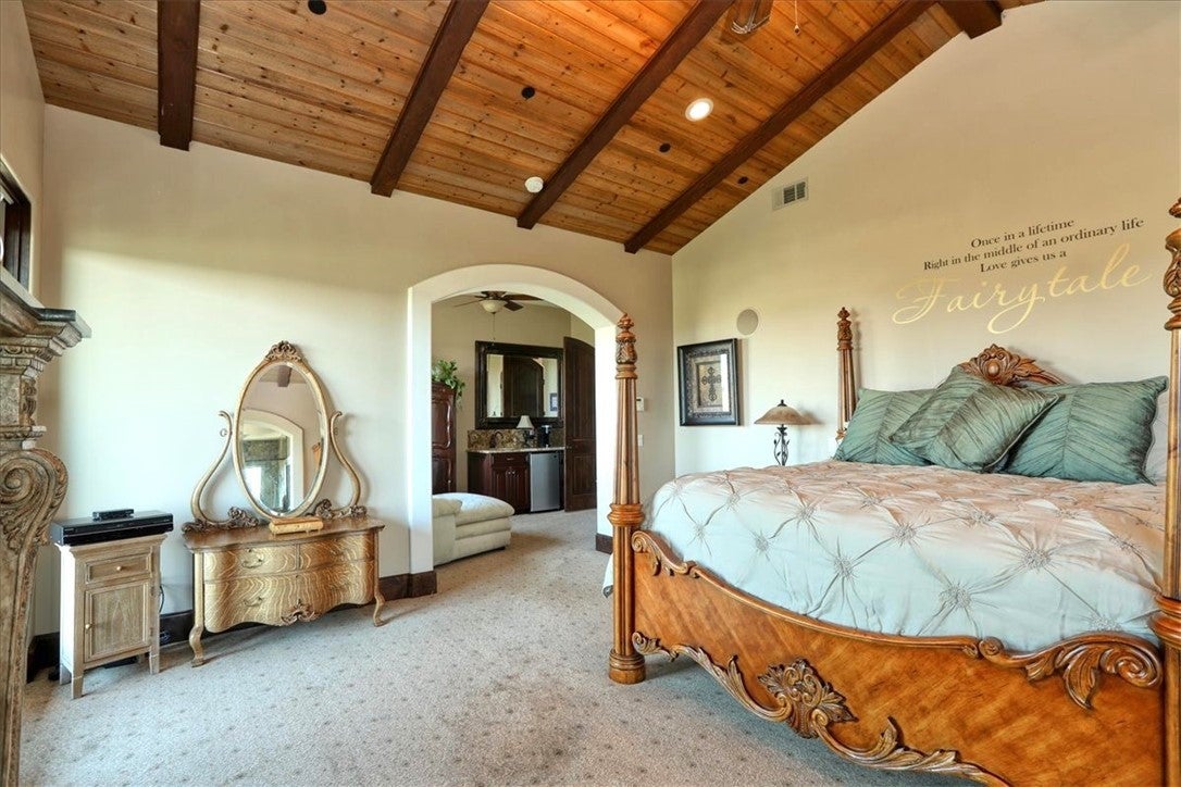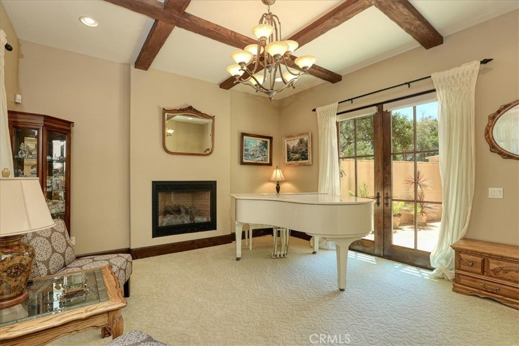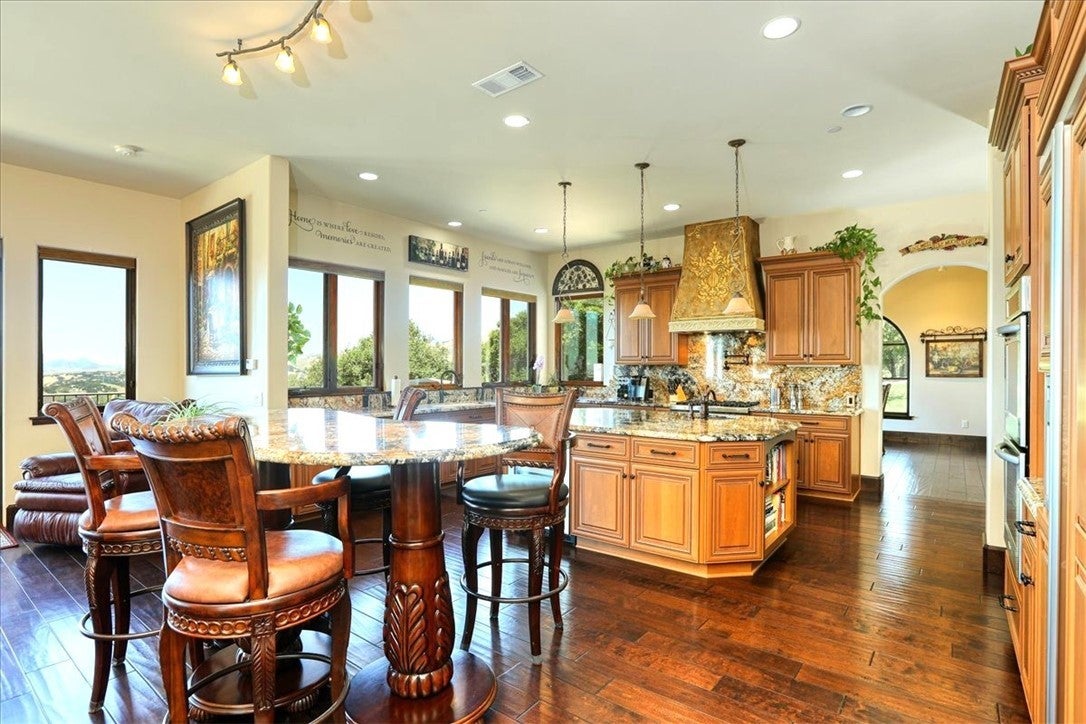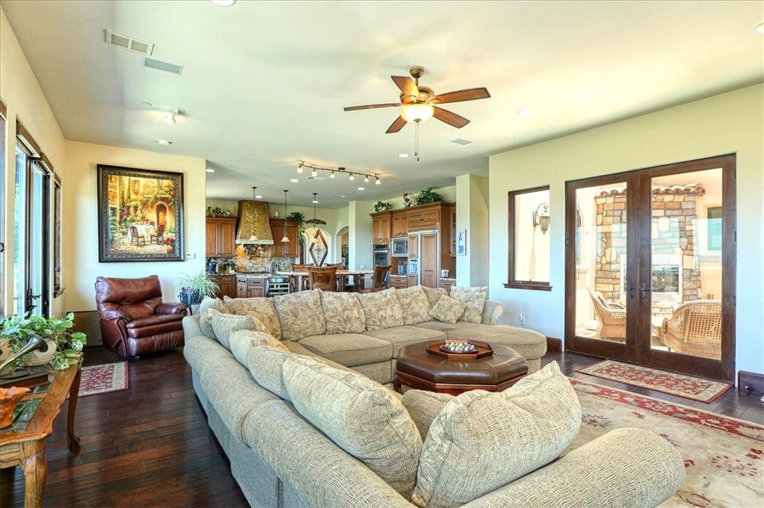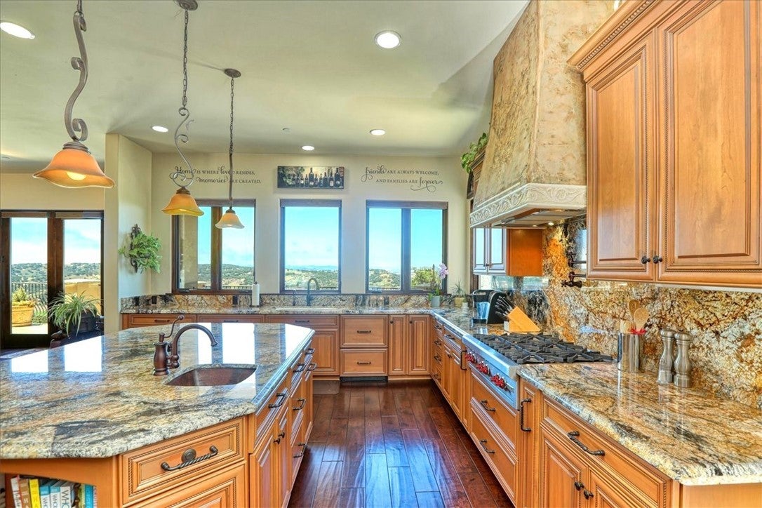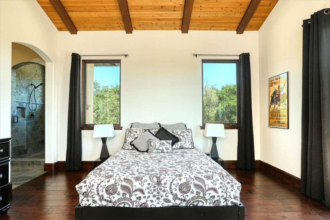 Enjoy the elegance and serenity of this magnificent Tuscan inspired villa that creates a sophisticated yet relaxing atmosphere. Absolutely incredible panoramic views stretch to the Pacific Ocean, the Edna Valley and beyond to the peaks of San Luis Obispo. Entering the home, you will find a welcoming foyer with elevated beam ceiling and beautiful custom wood and iron staircase. The versatile and thoughtfully designed floorplan includes elegant engineered wood flooring throughout the main level and natural wood beamed ceilings. Five fireplaces throughout create an intimate atmosphere. Numerous Jeld–Wen windows provide abundant natural light and outdoor views. On the main level a gourmet kitchen features beautiful natural wood cabinetry with convenient sliding pull out drawers in each cabinet, a Wolf cooktop with custom hand-crafted vent hood, built-in refrigerator, wine fridge, spacious granite counters, and more. The adjoining great room with wood burning fireplace offers access from both sides to outdoor spaces making it ideal for entertaining. On one side, picturesque vistas of the valley, vineyards and ocean await you from the view deck that is over 50’ in length. While on the other side is a protected courtyard with its own fireplace creating a relaxed ambiance to enjoy more views and sunsets. In addition to these amazing outdoor spaces is another courtyard at the southside of the residence that is a perfect place for morning coffee or breakfast as the sun rises above the oak trees. The owner’s suite with its elevated ceiling, fireplace and view deck is a tranquil place to start and end your day. The en-suite bathroom has a separate tub, walk in closet and spacious step-in shower with its own valley and ocean views. There are also two additional guest suites that include their own bathrooms, one with it's own view deck. There is a library, a gym and an office, each with the potential for many other uses or could be converted to additional bedrooms. There is an abundance of storage closets throughout, including two intentionally placed for a future elevator if needed. On the lower level is a 500 sq ft guest studio complete with kitchenette, a full bath, private access and private view deck. There is also a hobby room near the oversized 3 car garage. Surrounded by over 4,500 acres of protected open space, Las Ventanas Ranch is a highly sought after, exclusive custom home community just a few minutes from the Village of Arroyo Grande and San Luis Obispo.
