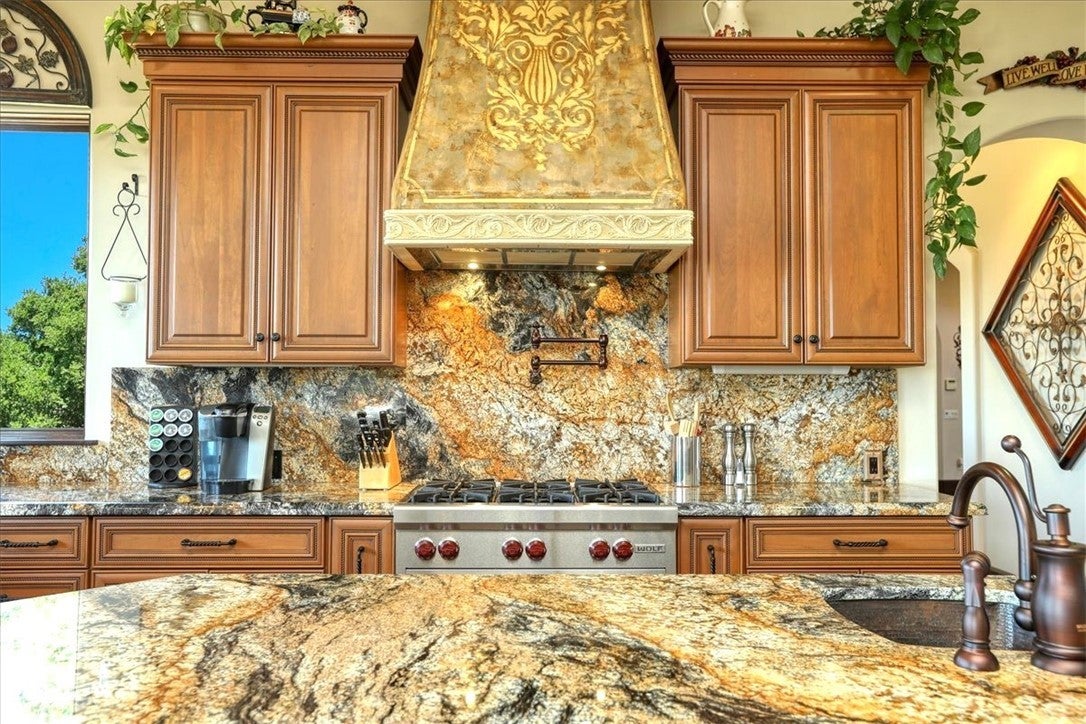 Dishwasher, Double Oven, Microwave, Range Hood, Refrigerator, SixBurnerStove, Water Softener