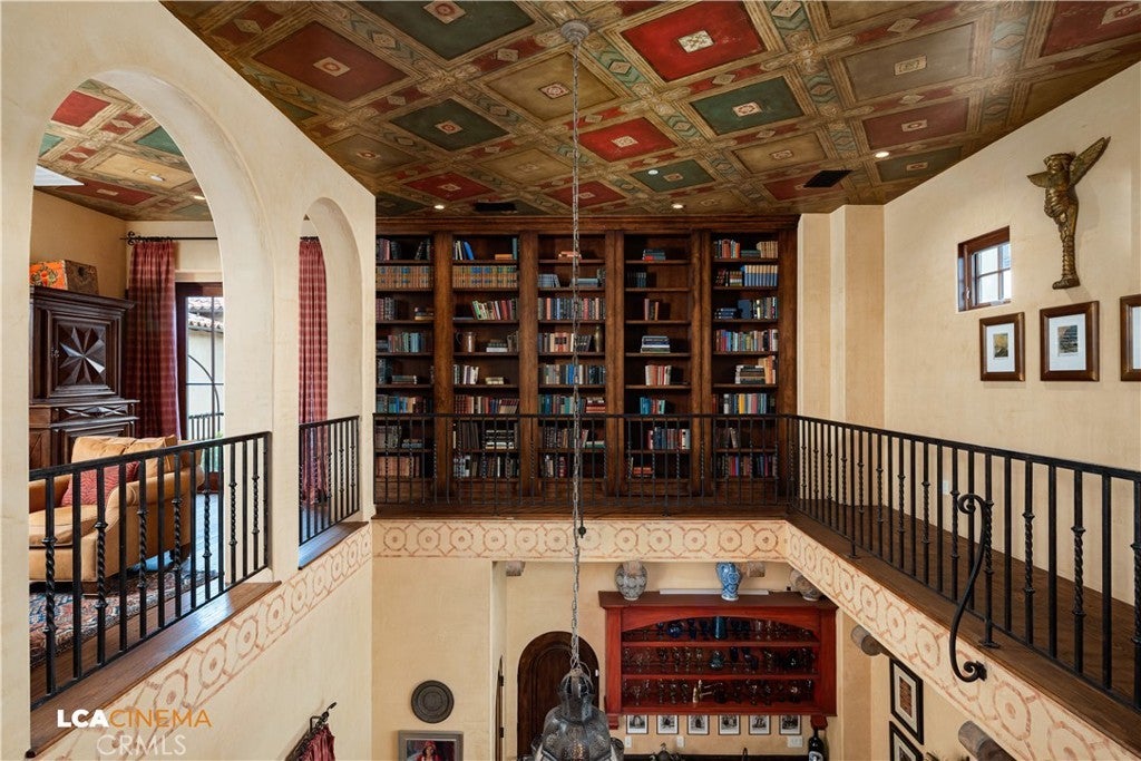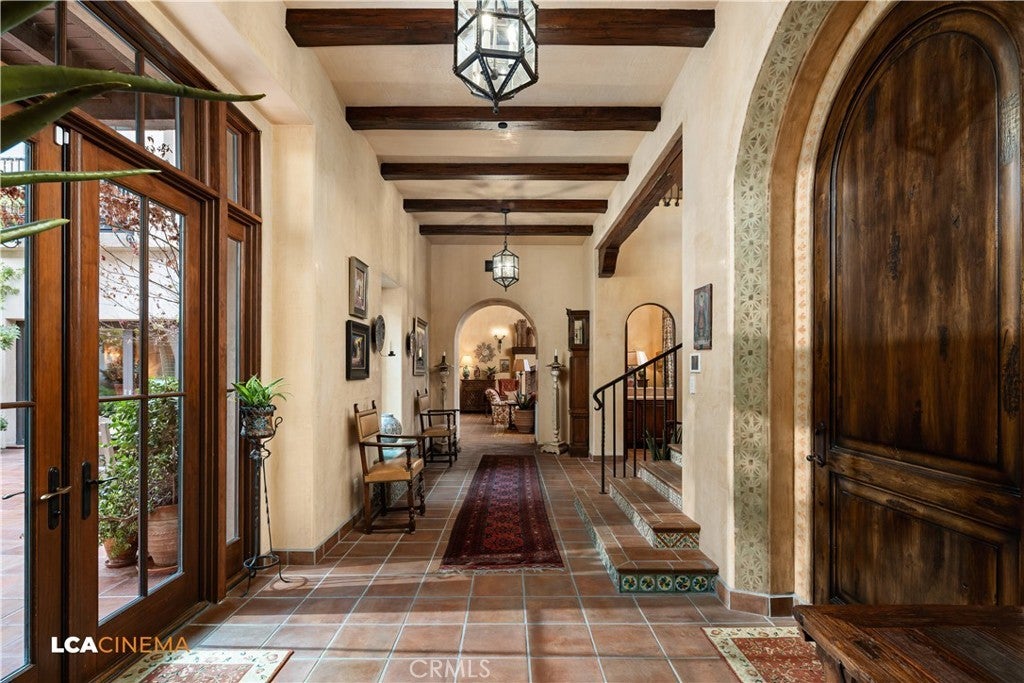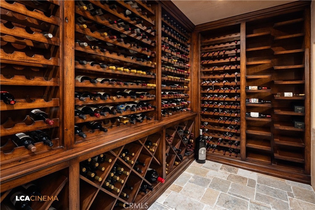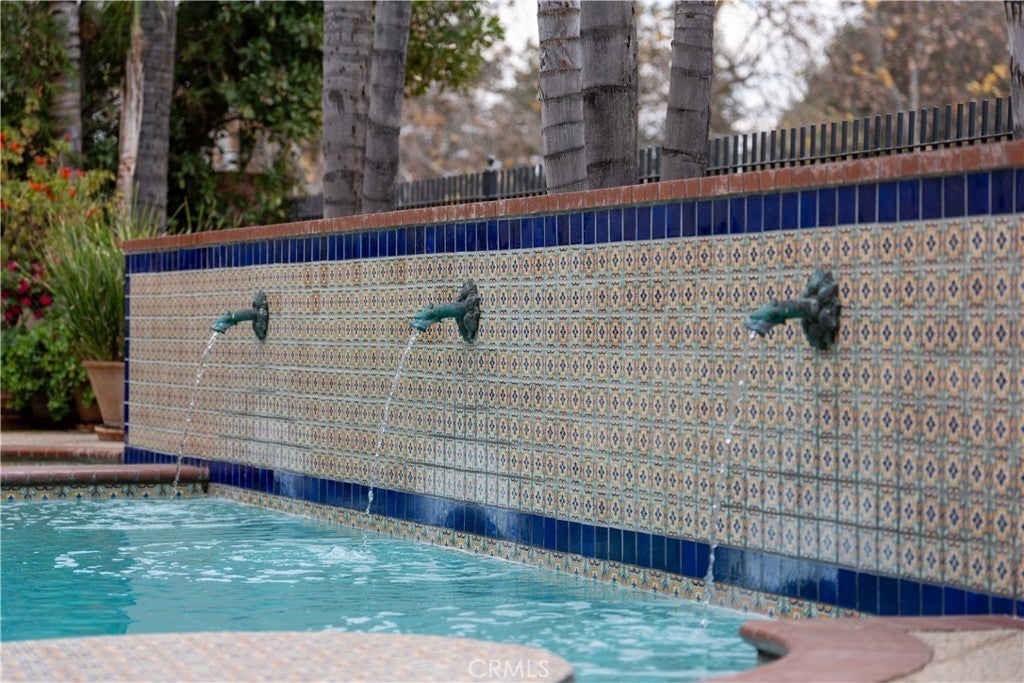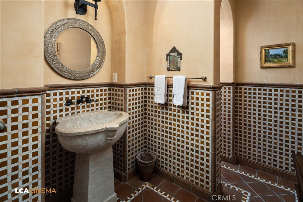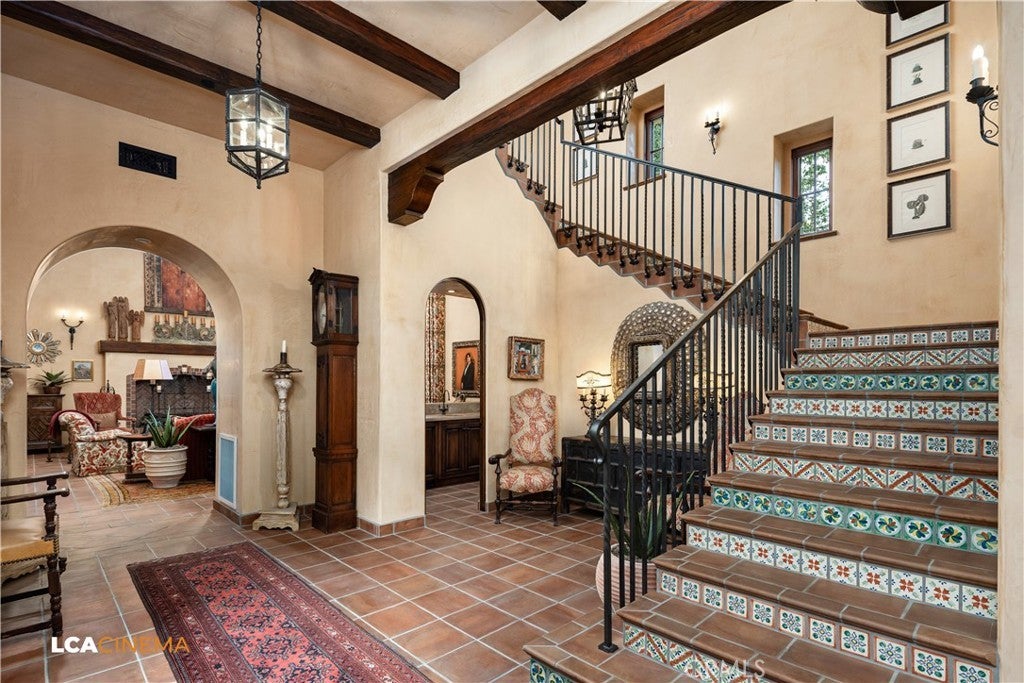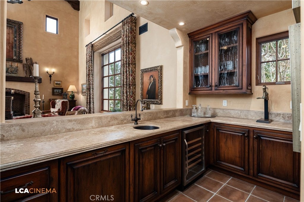 This stunning Spanish Colonial home located on the Seven Oaks Golf Course is within the finest enclave of homes in Bakersfield. A Santa Barbara design inspired by the original and only owner is a true one-of-a-kind masterpiece. This property features custom craftsmanship and meticulously chosen materials throughout. Upon entering, you're greeted by a grand staircase and a foyer leading into the courtyard featuring a Spanish fountain. Moving into the heart of the home, the kitchen offers both beauty and functionality boasting an oversized island, Viking appliances, double ovens, and a spacious butler’s pantry. The luxurious primary bedroom displays an elegant fireplace and incredible his and her bathrooms and closets. Spacious bedrooms with two bedrooms bringing you the comfort of ensuites giving this home room for extended family. Hand-selected materials including handcrafted beams, Mexican Talavera tiles, cotto pavers, custom woodwork, hand painted murals, and unmatched detailing of the Spanish centric interior design gives this home its unique character. Designed for the ultimate entertaining experience, this home offers a grand living room with a stately fireplace, an upstairs library overlooking an entertainment bar with its own private entrance, and a majestic wine cellar in the home’s basement. Outside the home is equally impressive as the property boasts golf course views, a pool, spa, multiple balconies, and a private entrance to the primary bedroom. A gated driveway and beautifully landscaped grounds complete this luxurious estate. Bathroom count is as follows: 2 full, 3 3/4, 4 1/2. Square foot of home is 9128