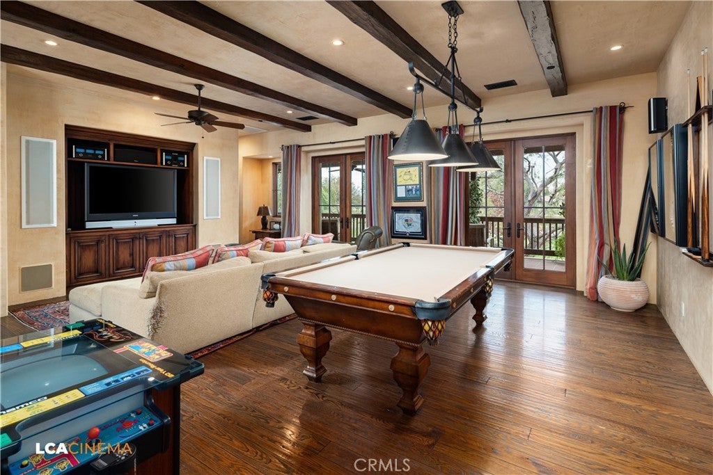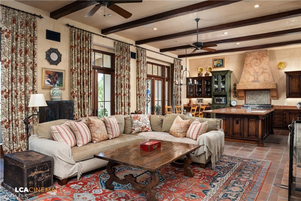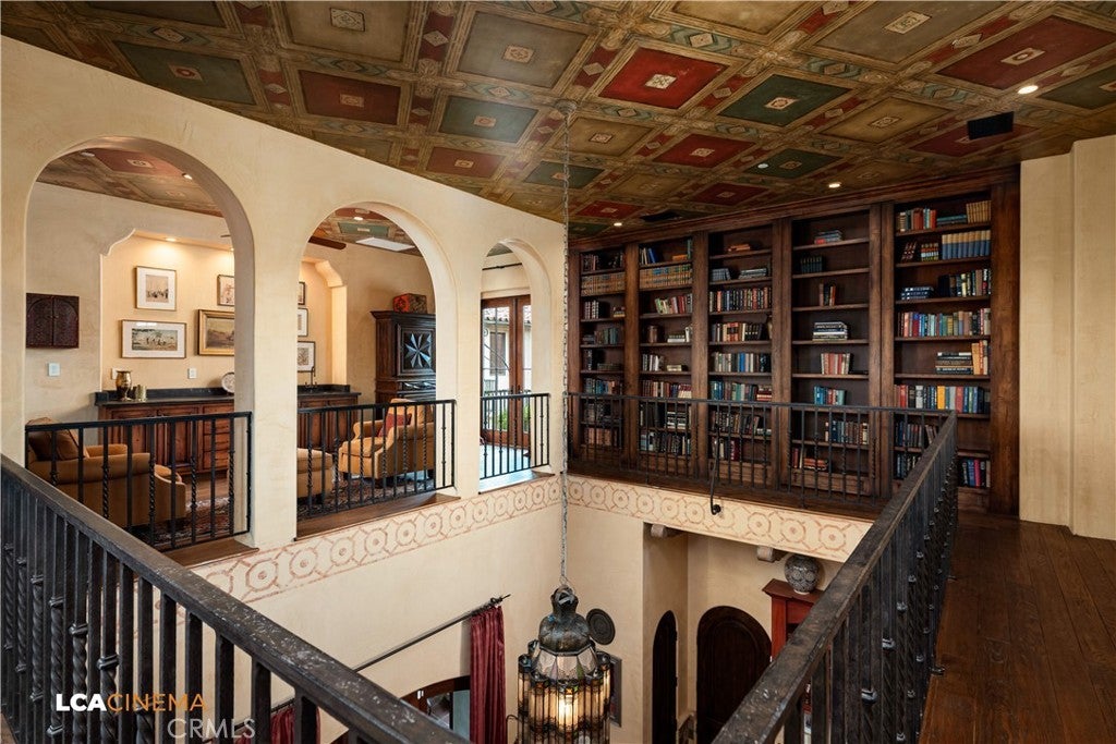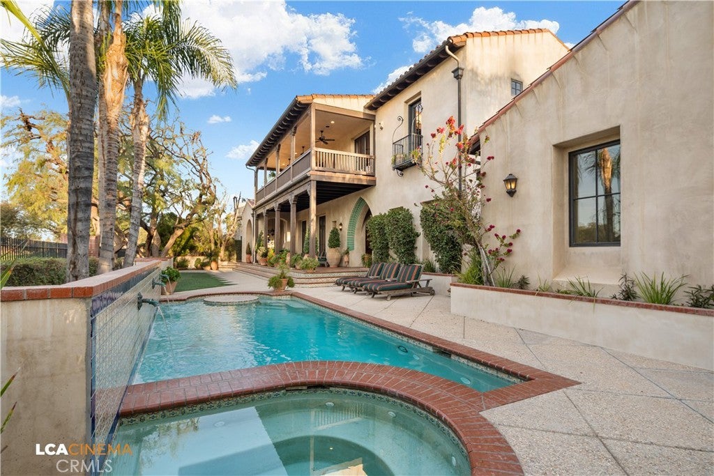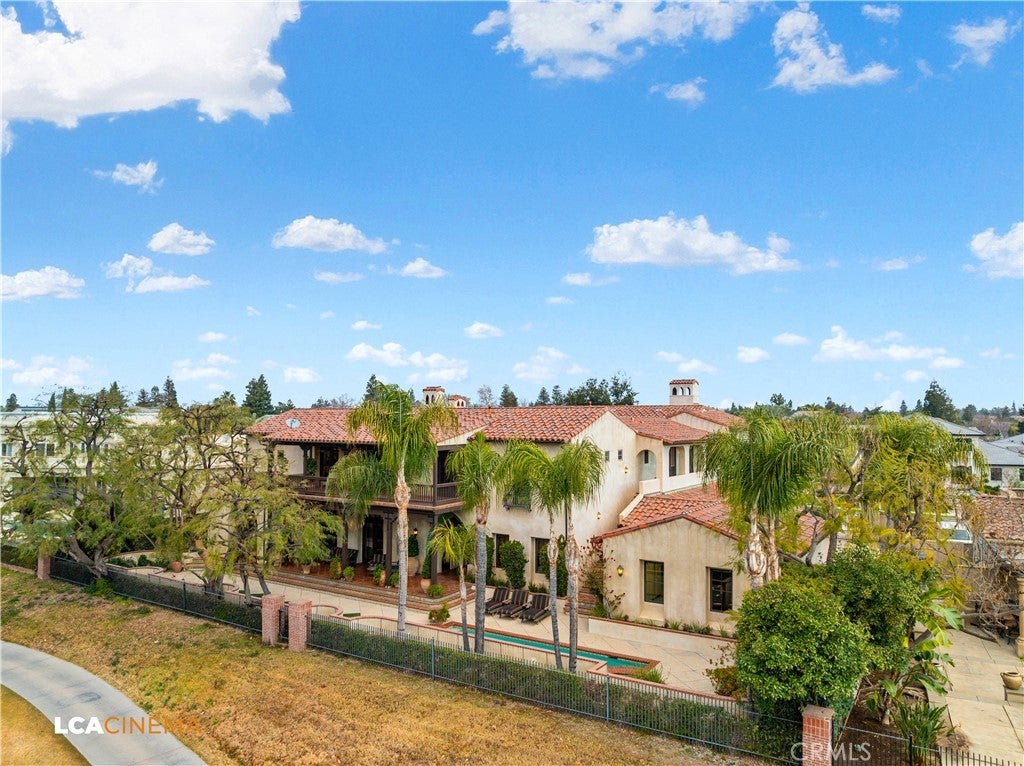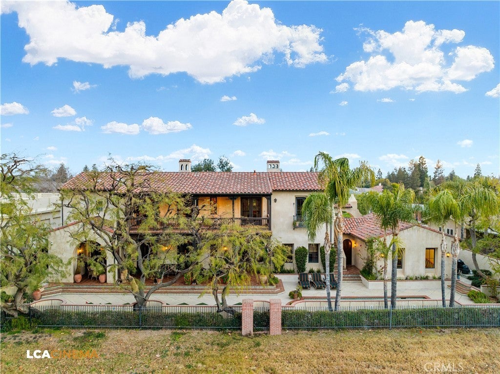 This stunning Spanish Colonial home located on the Seven Oaks Golf Course is within the finest enclave of homes in Bakersfield. A Santa Barbara design inspired by the original and only owner is a true one-of-a-kind masterpiece. This property features custom craftsmanship and meticulously chosen materials throughout. Upon entering, you're greeted by a grand staircase and a foyer leading into the courtyard featuring a Spanish fountain. Moving into the heart of the home, the kitchen offers both beauty and functionality boasting an oversized island, Viking appliances, double ovens, and a spacious butler’s pantry. The luxurious primary bedroom displays an elegant fireplace and incredible his and her bathrooms and closets. Spacious bedrooms with two bedrooms bringing you the comfort of ensuites giving this home room for extended family. Hand-selected materials including handcrafted beams, Mexican Talavera tiles, cotto pavers, custom woodwork, hand painted murals, and unmatched detailing of the Spanish centric interior design gives this home its unique character. Designed for the ultimate entertaining experience, this home offers a grand living room with a stately fireplace, an upstairs library overlooking an entertainment bar with its own private entrance, and a majestic wine cellar in the home’s basement. Outside the home is equally impressive as the property boasts golf course views, a pool, spa, multiple balconies, and a private entrance to the primary bedroom. A gated driveway and beautifully landscaped grounds complete this luxurious estate. Bathroom count is as follows: 2 full, 3 3/4, 4 1/2. Square foot of home is 9128