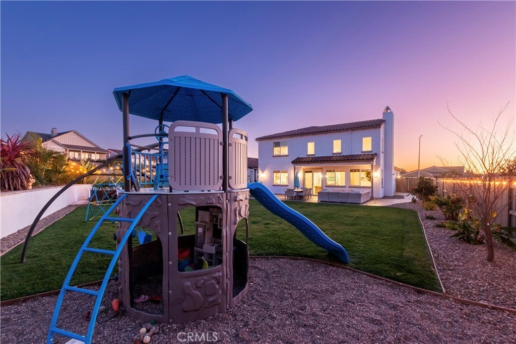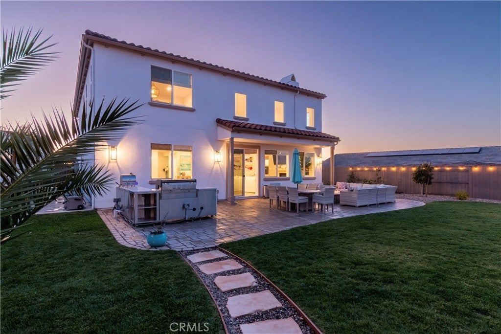 Stunning 5-Bedroom Home with Outdoor Kitchen, Expansive Backyard & Premium Upgrades! Welcome to this exceptional 5-bedroom, 4-bathroom two-story home that offers RV parking, a huge backyard, and unparalleled indoor-outdoor living. The backyard is an entertainer's dream featuring an outdoor kitchen with a Mont Alpie pizza oven, grill, and fridge, complemented by gorgeous lighting, a high-end hot tub, and a natural gas fire pit perfect for cozy evenings under the stars. Get your fruit fix! Just planted a variety of delicious fruit trees including mandarin, lemon, avocado, fugi apple, peach, plum, Granny Smith, apricot, and banana. Inside, the massive kitchen is a chef's delight, complete with LG stainless steel appliances, a stunning island with ample seating, a large pantry for all your storage needs, and a dedicated wine bar area featuring a bodega fridgeideal for showcasing your favorite Central Coast wines alongside your coffee station. This home is equipped with air conditioning, a secure security system, and features owned solar by SunPower to keep energy costs low. The versatile floor plan includes two bedrooms downstairs and a den that could serve as an additional bedroom or suite, while all other bedrooms are located upstairs. The luxurious primary suite boasts a large, spacious closet, a soaking tub, a large shower, dual sinks, and spectacular mountain views that greet you each morning. Additionally, select bedrooms offer ocean views on clear days, providing a serene backdrop throughout the home. As part of the Summit Club HOA, enjoy resort-style amenities such as a pool, Jacuzzi, gym, clubhouse, pickle-ball courts, basketball courts, and more. Don't miss the opportunity to experience this truly remarkable homeschedule your showing today!
