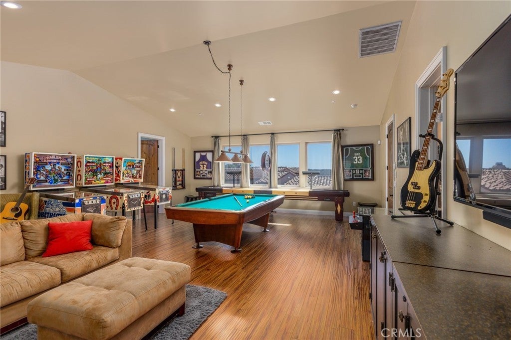 A remarkable blend of luxury, privacy, and versatility awaits in this stunning Arroyo Grande estate. Perfectly situated on 2.8 serene acres, this exceptional property spans approximately 7,840 sq. ft. of living space and includes a magnificent 5-bedroom, 7-bath main residence plus a 1,200 sq. ft. 2-bedroom, 2-bath ADU. Inside the main home, expansive open-concept living spaces flow seamlessly from the grand entry and formal living room to the dining area and chef-inspired kitchen—complete with top-of-the-line appliances, an indoor BBQ, granite countertops, and a large island with custom cabinetry. The elegant primary suite features dual walk-in closets, a spa-style bathroom, and an adjoining sitting area. Each additional bedroom is a private ensuite, beautifully designed for comfort and style. Thoughtfully designed for both entertaining and everyday living, the home also includes a family room, private office, game room, media room with home theater, exercise room, and an impressive temperature-controlled wine cellar. The 5-car garage is complemented by four additional spaces currently housing recreational vehicles, plus a detached 2-car pull-through garage used as a spacious workshop. Outdoor living is resort-inspired, with a pool, spa, outdoor kitchen, fireplace, pizza oven, and a pool house complete with living space, kitchen, and bathroom. Enjoy tennis, pickleball, or basketball on the courts, or simply relax among the multiple patios and sitting areas surrounded by lush, professional landscaping, hardscape, and a small vineyard. The stylish ADU Casita offers its own 2-car garage and has been a highly desirable vacation rental, featuring an open floor plan with a bright living room, full kitchen, and two large ensuite bedrooms. This gated solar-powered estate captures panoramic views of the surrounding hills and California coastline, offering the ultimate in luxury living. Just minutes from the charming Arroyo Grande Village, San Luis Obispo, and the Central Coast’s renowned beaches, dining, and wineries—this extraordinary property is both an entertainer’s paradise and a private retreat with the bonus of the separate income-producing Casita!