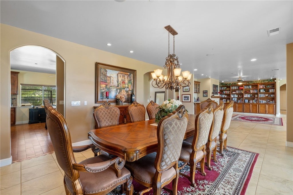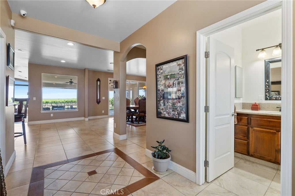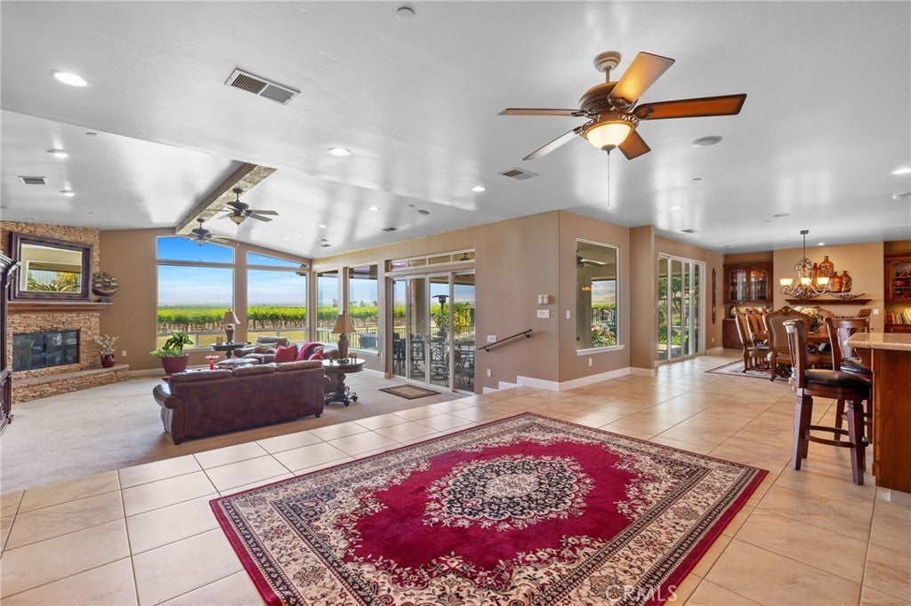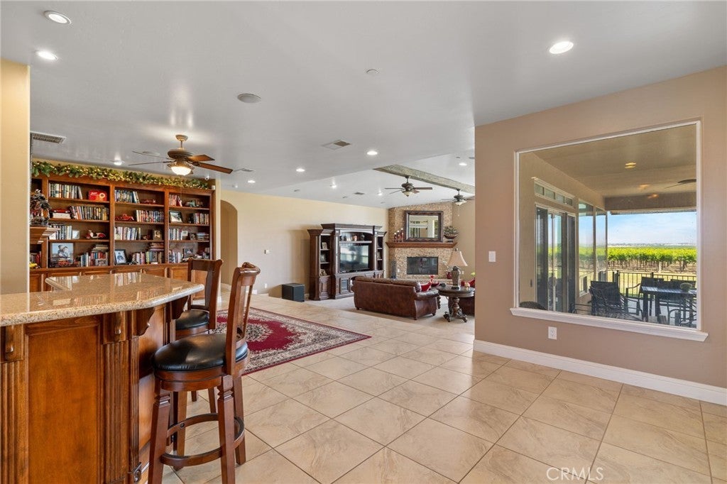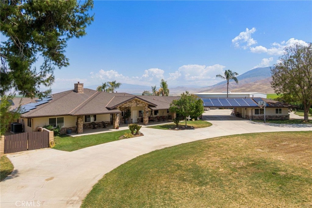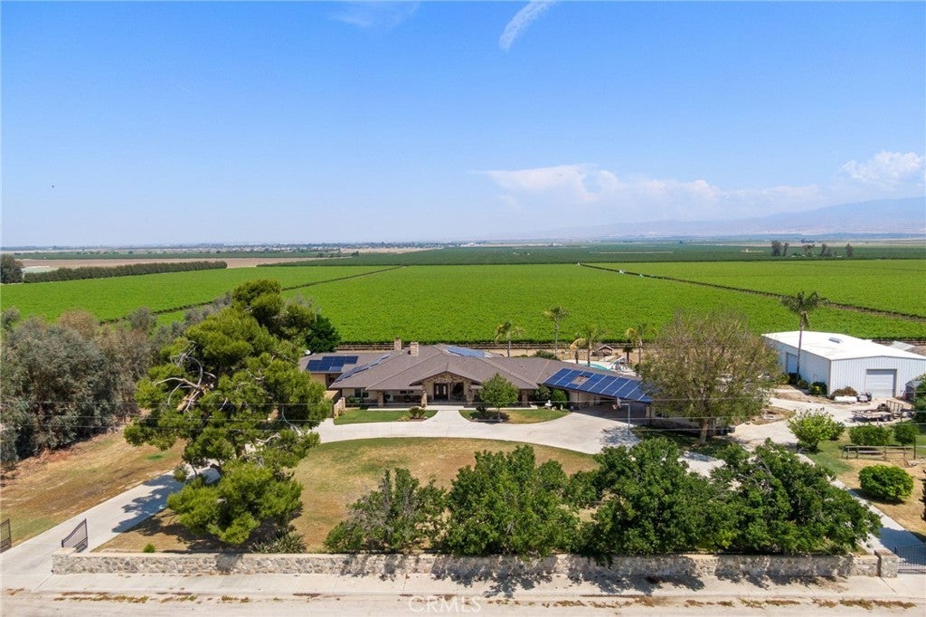 This ranch-style home sits on 2.27 acres at the foot of the Tehachapi Mountains. Nestled amongst grape vineyards with spectacular views of the mountains, the valley and the city lights of Arvin. The open concept living room, dining room, library and wet bar provide ample area for entertaining. The chef's kitchen features granite countertops, center island, Electrolux gas stovetop, double ovens, built-in Kenmore Elite refrigerator/freezer and walk-in pantry. There is also a bonus/exercise room. The main house is 4,977 sf and has 3 en-suite bedrooms with walk-in closets, and 5.5 bathrooms. The primary en-suite also has a fireplace, dressing area and an office. Additional fireplaces in the living room, library, dining room, and bonus room. A covered porch spans the front of the house. Out back is a covered patio and pool. The ADU, connected by the carport, is 577 sf and has one bedroom, one bath, living room and kitchenette. There is a 3,000 square foot shop building with roll-up doors.