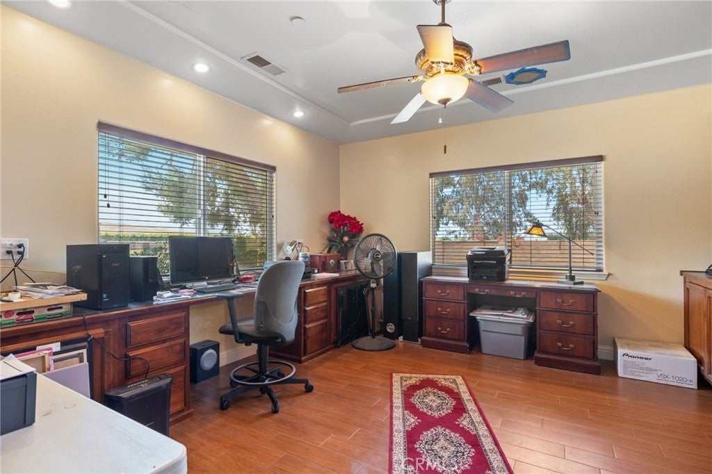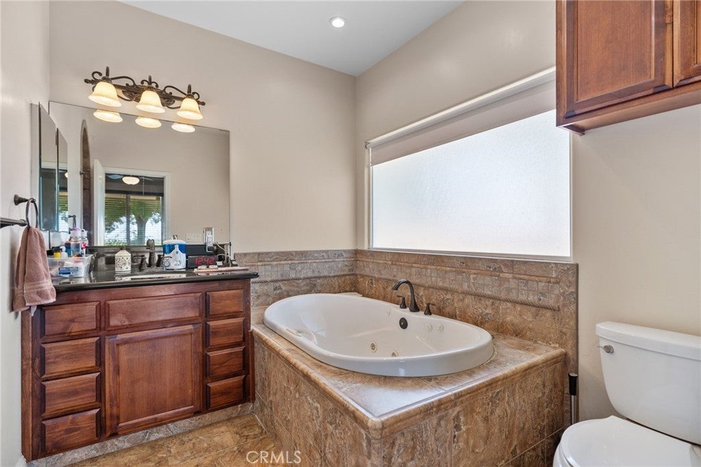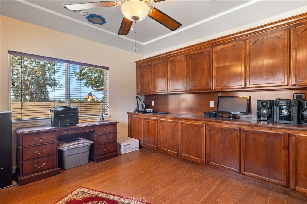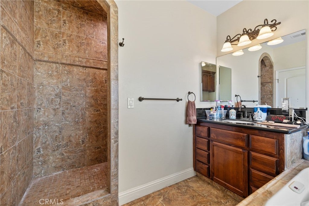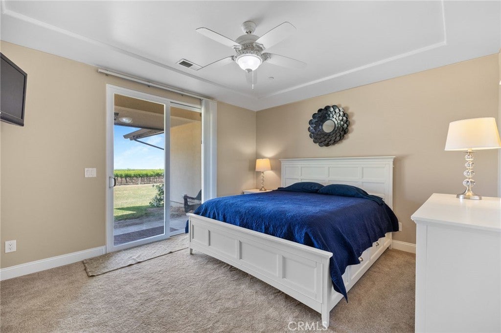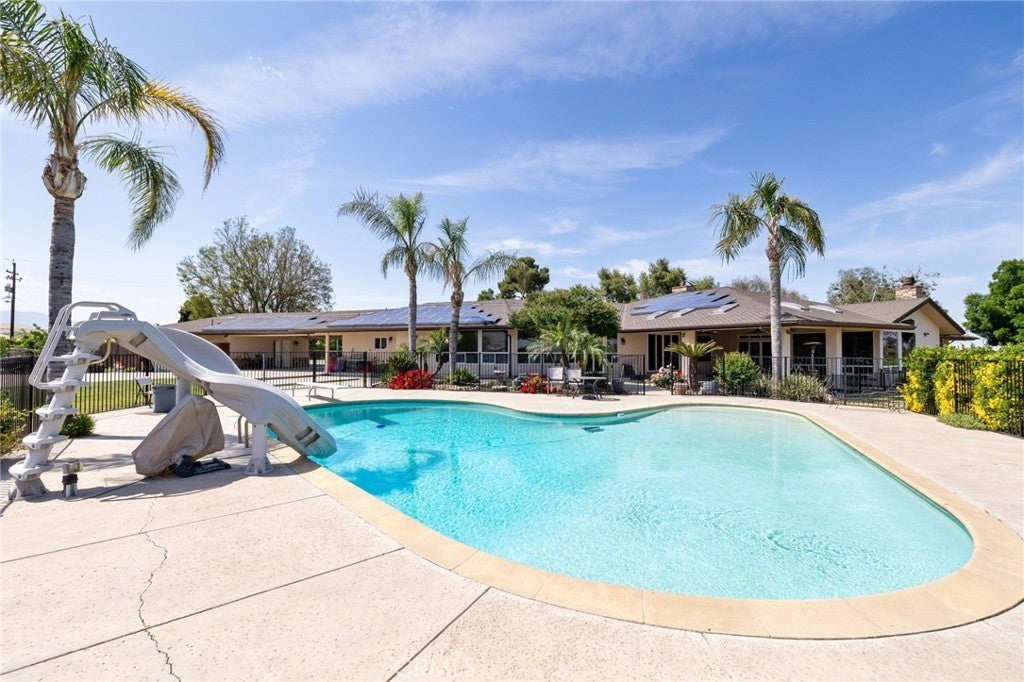 This ranch-style home sits on 2.27 acres at the foot of the Tehachapi Mountains. Nestled amongst grape vineyards with spectacular views of the mountains, the valley and the city lights of Arvin. The open concept living room, dining room, library and wet bar provide ample area for entertaining. The chef's kitchen features granite countertops, center island, Electrolux gas stovetop, double ovens, built-in Kenmore Elite refrigerator/freezer and walk-in pantry. There is also a bonus/exercise room. The main house is 4,977 sf and has 3 en-suite bedrooms with walk-in closets, and 5.5 bathrooms. The primary en-suite also has a fireplace, dressing area and an office. Additional fireplaces in the living room, library, dining room, and bonus room. A covered porch spans the front of the house. Out back is a covered patio and pool. The ADU, connected by the carport, is 577 sf and has one bedroom, one bath, living room and kitchenette. There is a 3,000 square foot shop building with roll-up doors.