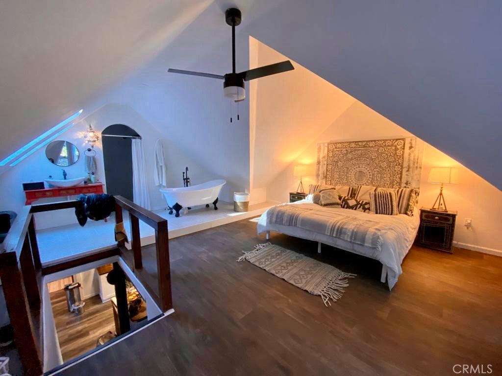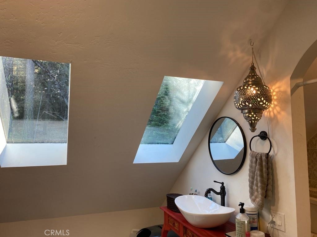 Off the grid and full of character, this artist's enclave is your perfect turn-key, fully furnished mountain getaway! Nestled on 1.1 acres among towering trees and gorgeous views, this unique 4-bedroom, 2-bath cabin blends rustic charm and modern comforts. Step into the remodeled kitchen and open dining area with a cozy fireplace ideal for gathering with friends. The spacious sunroom invites natural light and is perfect for relaxing or entertaining. The luxurious primary suite is designed as a private sanctuary, where you can unwind under vaulted ceilings and gaze at the stars through large windows. Outside, walled yards create peaceful spaces for lounging, creativity, and play. A detached building makes a perfect art studio, workshop, or whatever your imagination dreams up. Starlink internet and a fully paid solar system keep you connected and self-sufficient. Enjoy nature, privacy, and inspiration all in one special place!