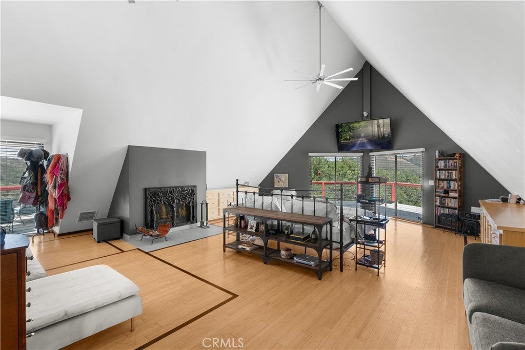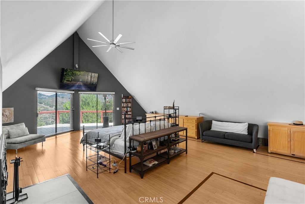 This property features a primary residence + 2 rental units The stunning main house is framed with hillside, blue sky, stellar, and sunrise to sunset views from the wrap-around deck, abundant windows, and illuminating skylights. Enjoy this exclusive setting + the architectural and artistic achievement of the home. The dazzling interior, features an expansive great room with an adjoining office, impressive sweeping ceilings and richly-colored walls suitable for a gallery. The kitchen gleams with granite, quartz, and stainless, plus a deep pantry, island/dining bar and additional serving bar shared with and open to the sparkling dining room. The spacious 1st-floor bedroom adjoins a full bath offering the versatility of a 2nd master suite. Attractive porcelain tile throughout the 1st floor is easy to maintain. The staircase and 2nd level flooring are crafted in rich wood with accent inlay. The spectacular master suite highlights magnificent views with glass doors to the extensive deck, and is warmed by a stylish fireplace. A large walk-in closet expands the abundant built-in storage cabinets. The master bath offers heated floors, 2 sinks, and a large dual-head shower. The versatile loft above the master suite is ideal as a library/retreat. This magnificent home has been upgraded with a recent, corrosion-resistant metal roof, water filtration system, tankless water heater, solar system, a back-up generator, and gracious patio spa. There are 2 residential rentals + barn/garage. See multi-family listing