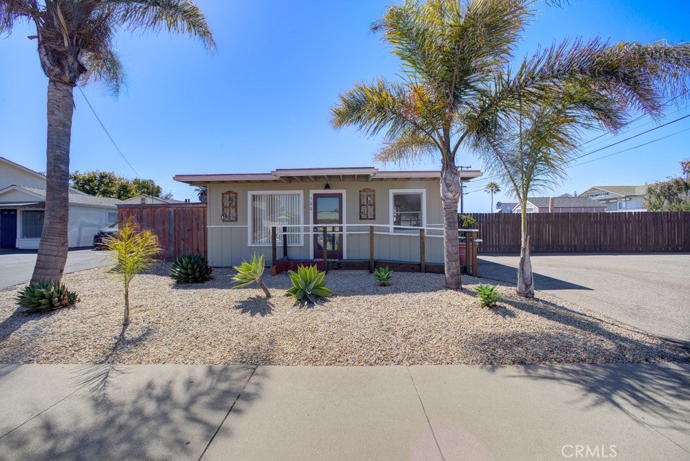 Welcome to your private coastal oasis in the vibrant and emerging town of Grover Beach. This unique property combines a 2-bedroom, 1-bath residence with a separate office suite featuring a wheelchair friendly ramp and bathroom. This property is perfect for those seeking a wonderful home with added commercial benefits. Step through the double glass front doors into a bright, open living area seamlessly connected to a beautiful, private landscaped yard that is perfect for relaxing, outdoor dining, entertaining and raised planter beds. The home's interior includes a kitchen, full bath with subway tiled tub/shower, two bedrooms off a wide hallway, and an indoor laundry closet. Recent upgrades include new windows in the residence, energy-efficient LED lighting, fresh interior paint, solid flooring throughout, professional landscaping, and a convenient storage shed. A large avocado tree adds to the charm of this property. The separate professional office suite, with its own address and private entrance, can be rented independently or integrated with the home to create a flexible live-work environment. Enjoy a highly walkable neighborhood with an 89 Walk Score—steps to coffee shops, juice bars, the beach, and a community park undergoing exciting renovations. A rare opportunity where comfort, flexibility, and coastal living converge. Don’t miss your chance to own this charming and versatile Grover Beach property.
