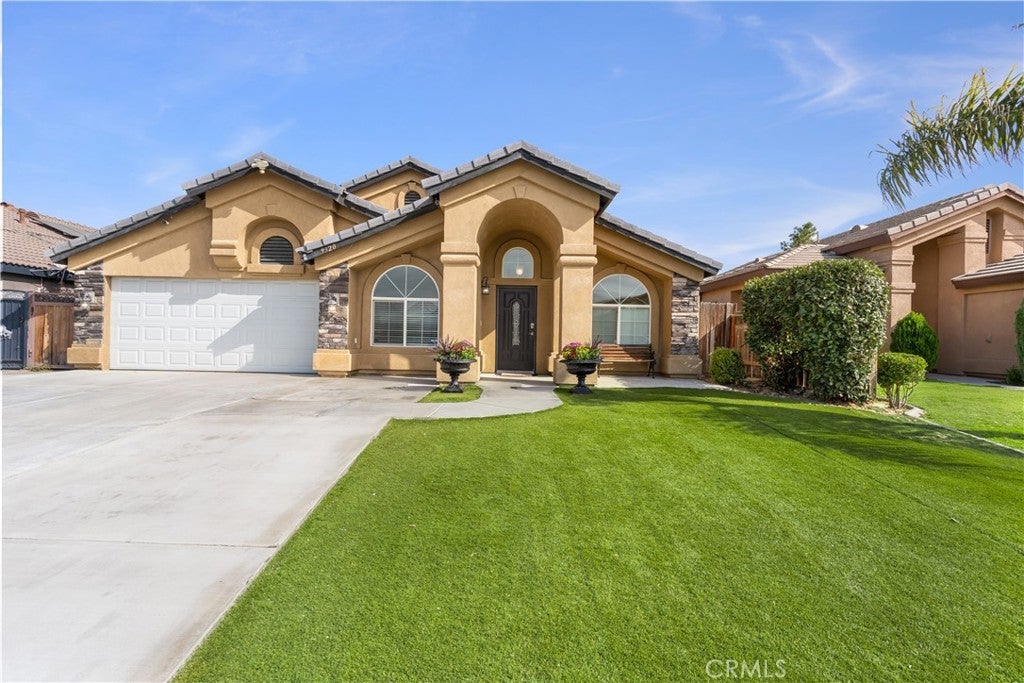 Beautiful, Spacious and located in a great established SW Bakersfield neighborhood! Welcome to this Beautifully Upgraded 5 Bedroom Home offering both Comfort and Style! It has approx. 2,426 sf, split wing layout, vaulted ceiling, stunning remodeled kitchen with white cabinets, granite and more, 2 living areas that offer space and relaxation, laundry room, formal breakfast and dining areas for casual meals and formal gatherings, huge vaulted detailed wood ceiling patio with plenty of space to enjoy the outdoors, concrete block & wood fences, synthetic grass for low maintenance and solar panels for energy production.