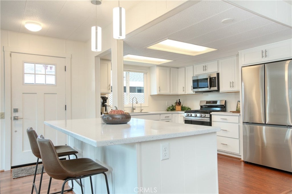 Beautifully updated, this light filled 2 bedroom 2 bath home is located in the popular 55+ community of Bolsa Chica Mobile Estates. The modern open floor plan features an all new kitchen with new cabinetry, Corian counters, new stainless appliances, RO system, updated lighting, new bath vanities and sinks, updated luxury vinyl flooring, custom window coverings, dual pane windows, new roof, water softener, Trek-type porches and a low maintenance, professionally landscaped front yard. The large backyard is a blank canvas just waiting for all your favorite outdoor entertaining and gardening ideas. Bolsa Chica Mobile Estates is walking distance to the Old Village of Arroyo Grande where you'll enjoy local shopping, dining, theater and farmers market, and just minutes away from sandy beaches, Oceano Dunes, Lake Lopez, golf courses & wineries. Included in the price is a 1/65th share of ownership in the resident owned park. With a low HOA and NO SPACE RENT, homeowners have access to a clubhouse with library, pool tables, ping pong table, dog park, horse shoes, barbecue area, Tiki Bar and a heated pool. Call for your private tour today.