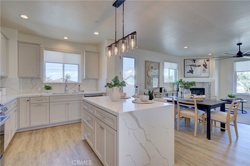 Luxury finishes and panoramic ocean views take center stage in this brand new North Grover Beach residence. Bright, open interiors showcase luxury finishes, soft close cabinetry, ocean vistas and a seamless indoor/outdoor flow that makes everyday life feel like a getaway. The chef’s kitchen balances function and style, with smart LG ThinQ stainless appliances, quartz countertops, a bold waterfall island, and thoughtfully designed pull out drawers in select cabinets and pantry spaces for effortless organization. Just steps away, the inviting living room centers around a sleek gas fireplace, creating the perfect backdrop for both quiet evenings and lively gatherings. The primary bedroom features a beautiful ensuite with exquisite quartz finishes, walk in shower, double vanity, and a soaking tub. Three bedrooms are conveniently located on the main level, offering comfort and practicality for everyday living. The main floor bathroom exudes sophistication with porcelain tile flooring and shower, while the dedicated laundry room provides functionality with extra storage and a utility sink. Designed for true indoor/outdoor living, the home offers three unique outdoor spaces: a deck off the living room, a deck off the kitchen, and a spectacular rooftop retreat accessible directly from the kitchen stairway. At the rooftop you have, built in lighting, multiple outlets, and gas plumbing make it an entertainer’s dream where you and your guests can soak in breathtaking sunsets and endless ocean vistas. Landscaped front and rear yards extend your living space outdoors, while owned solar and energy efficient features ensure year round comfort and ease. All of this, just minutes from beaches, dining, shopping, and scenic coastal trails, makes this home a perfect expression of the Central Coast lifestyle you’ve been dreaming of.