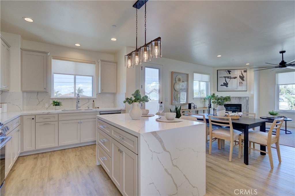 Luxury finishes and panoramic ocean views take center stage in this brand new North Grover Beach residence. Bright, open interiors showcase luxury finishes, soft close cabinetry, ocean vistas and a seamless indoor/outdoor flow that makes everyday life feel like a getaway. The chef’s kitchen balances function and style, with smart LG ThinQ stainless appliances, quartz countertops, a bold waterfall island, and thoughtfully designed pull out drawers in select cabinets and pantry spaces for effortless organization. Just steps away, the inviting living room centers around a sleek gas fireplace, creating the perfect backdrop for both quiet evenings and lively gatherings. The primary bedroom with ocean views, features a beautiful ensuite with exquisite quartz finishes, walk in shower, double vanity, and a soaking tub. Three bedrooms are conveniently located on the main level, offering comfort and practicality for everyday living. Bathrooms exude sophistication with porcelain tile flooring and showers, while the dedicated laundry room provides added convenience with extra storage and a utility sink. Designed for true indoor/outdoor living, the home offers three unique outdoor spaces: a deck off the living room, a deck off the kitchen, and a spectacular rooftop retreat accessible directly from the kitchen stairway. At the rooftop you have, built in lighting, multiple outlets, and gas plumbing make it an entertainer’s dream where you and your guests can soak in breathtaking sunsets and endless ocean vistas. Landscaped front and rear yards extend your living space outdoors, while owned solar and energy-efficient features ensure year-round comfort and ease. All of this, just minutes from beaches, dining, shopping, and scenic coastal trails, makes this home a perfect expression of the Central Coast lifestyle you’ve been dreaming of.