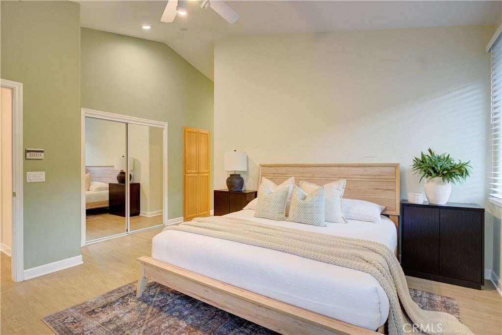Ceiling Fan(s), Cathedral Ceiling(s), High Ceilings, Main Level Primary, Primary Suite