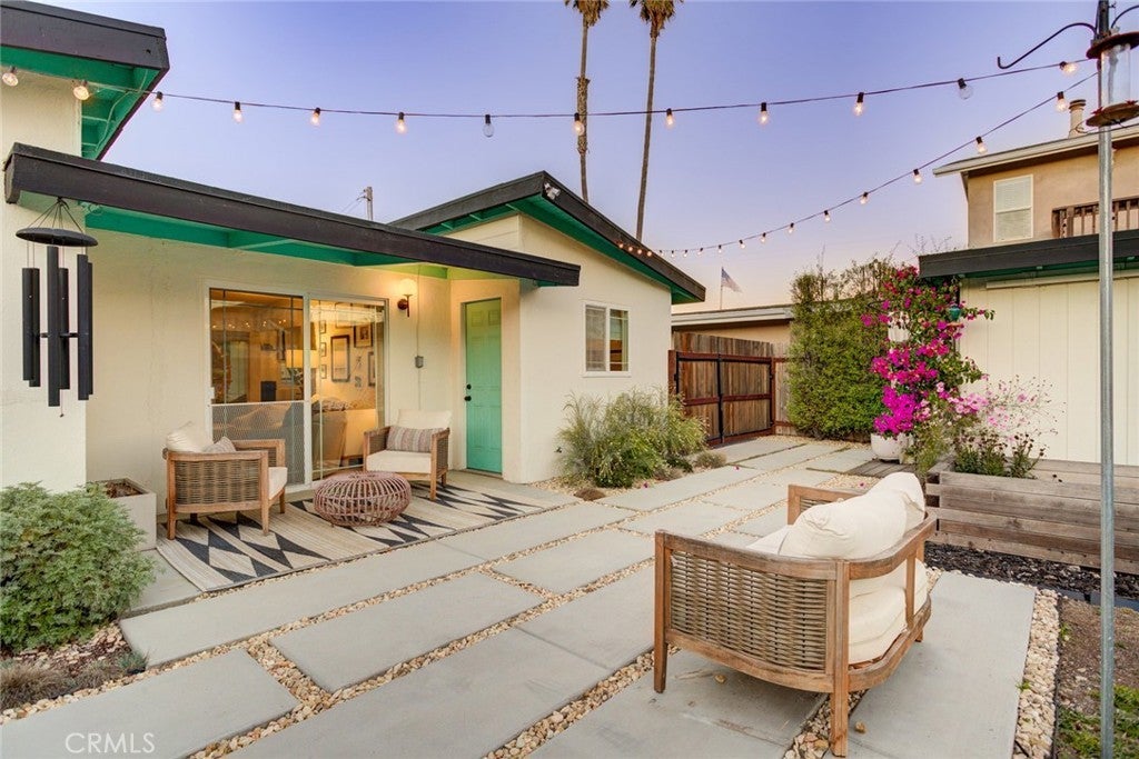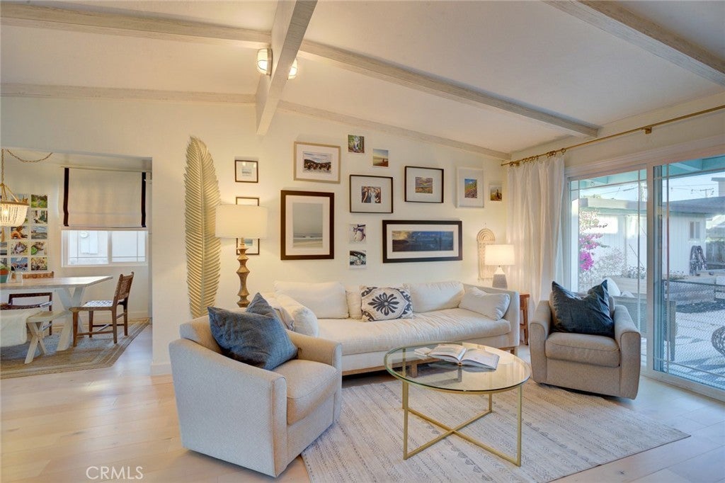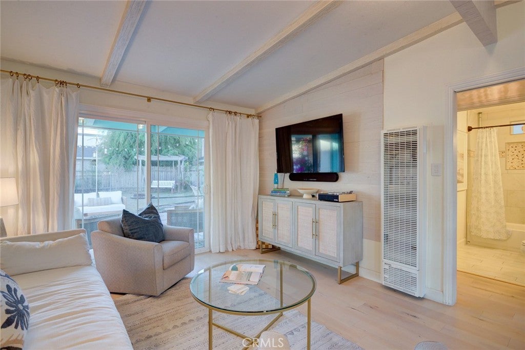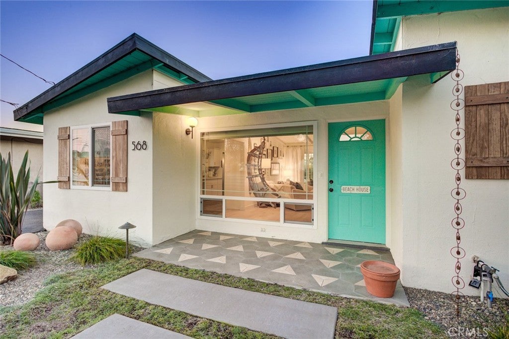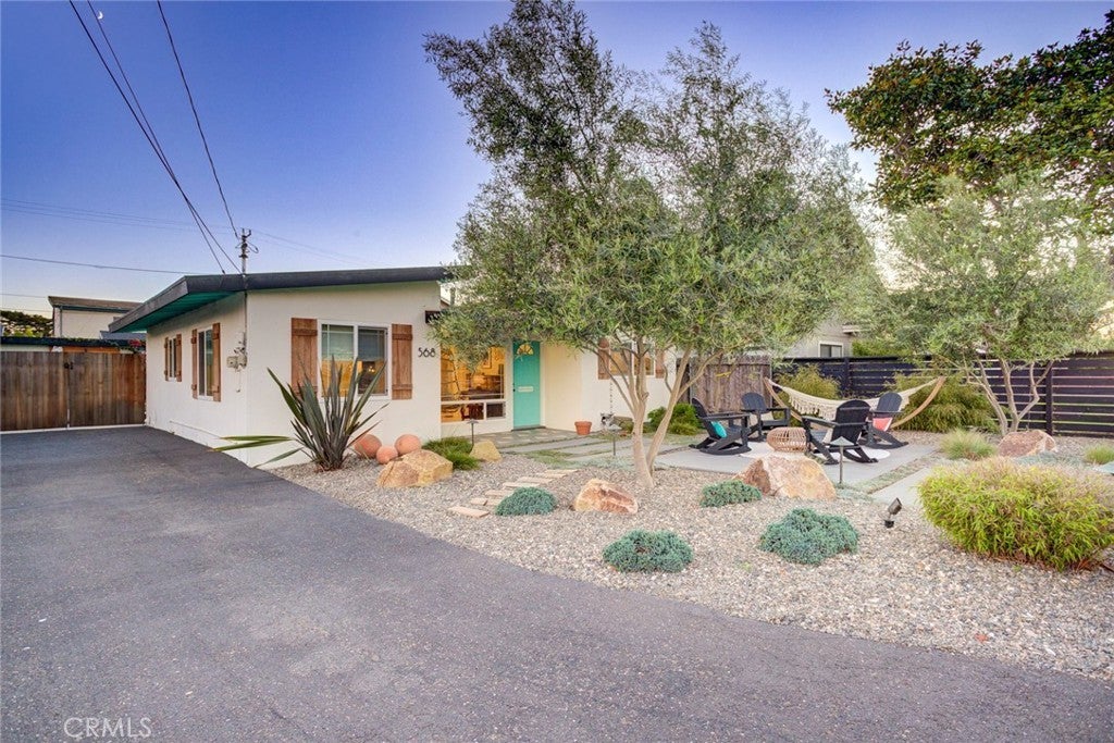 Welcome to 568 Seabright, a charming coastal retreat just blocks from the ocean. This beautifully updated 2-bedroom, 1-bath beach bungalow offers 924 square feet of light-filled living space, blending modern comfort with timeless coastal style. Inside, the inviting living room showcases vaulted beam ceilings and a large picture window that fills the home with natural light, while LVP and tile flooring flow seamlessly throughout. The modern kitchen features quartz countertops, white cabinetry, stainless steel appliances, and stylish new fixtures—creating a fresh, functional space perfect for everyday living or entertaining. The indoor laundry room adds convenience with a sink and matching front-load Samsung washer and dryer. A remodeled bathroom includes a sleek vanity, tile shower/tub combo, and built-in linen storage. Frosted glass closet doors, ceiling fans, and double-paned vinyl windows with custom coverings add thoughtful finishing touches throughout. Step outside to your private, fully fenced backyard oasis. A custom concrete patio is ideal for alfresco dining or cozy evenings by the fire, complemented by a pergola with a swinging bench, café lights, and raised garden beds surrounded by lush landscaping. An outdoor shower and storage shed provide plenty of room for surfboards and beach gear, while the gated entry enhances privacy and security. With its unbeatable location just blocks from the sand, 568 Seabright offers the perfect blend of coastal charm and modern convenience. Furnishings may be purchased separately - making it even easier to move right in and enjoy your new beach lifestyle.