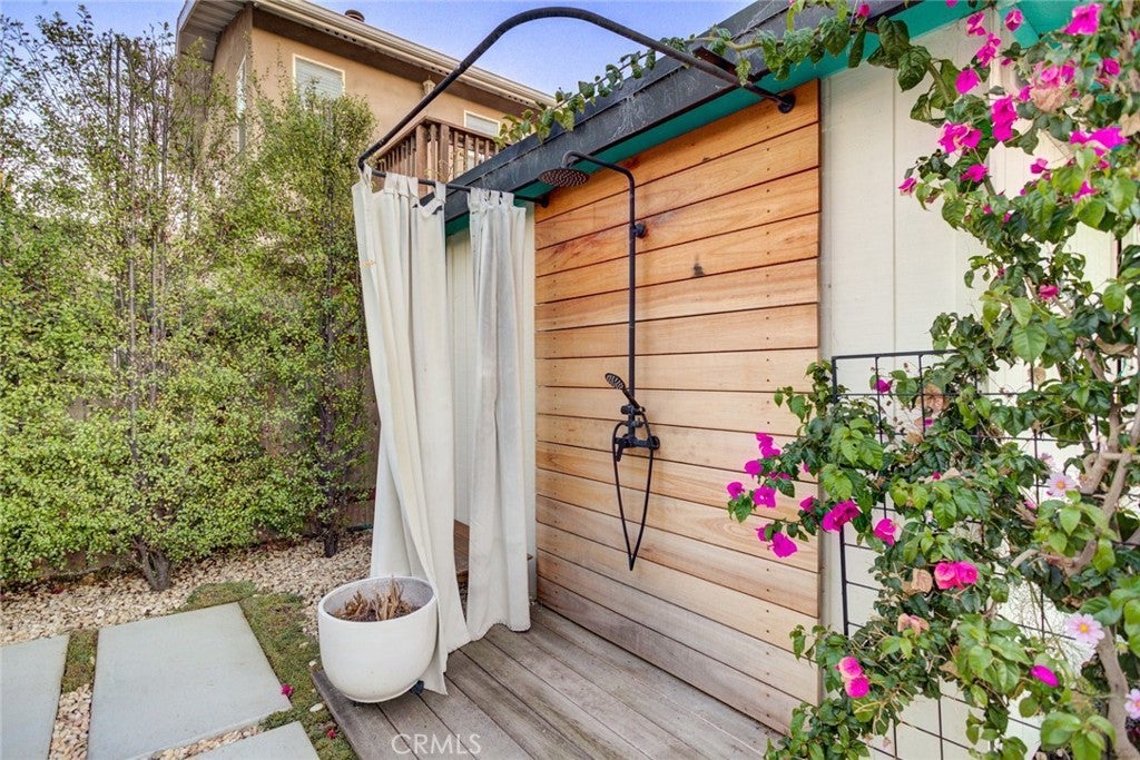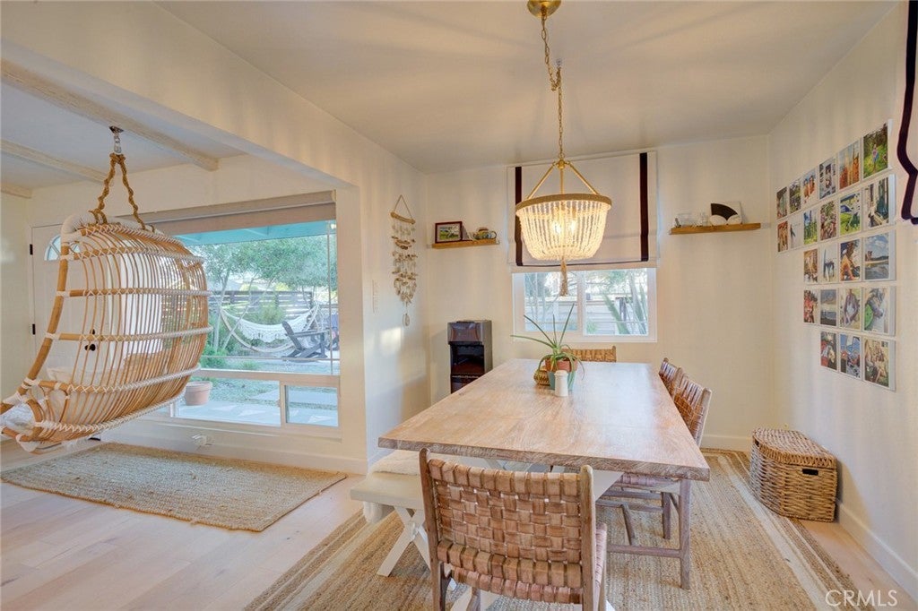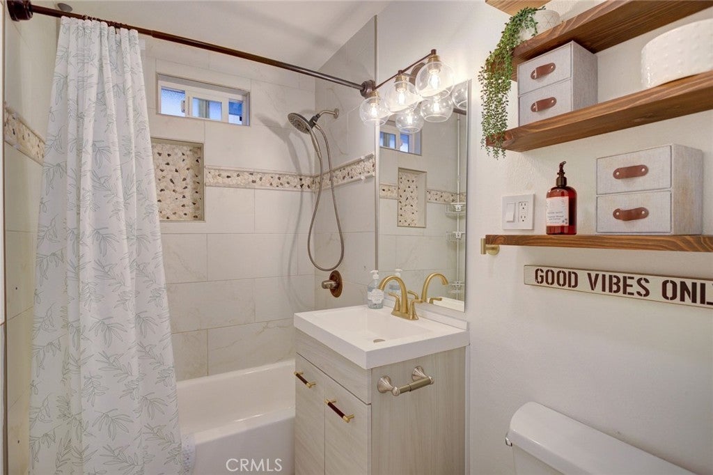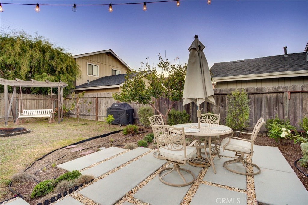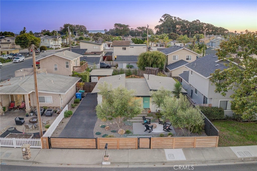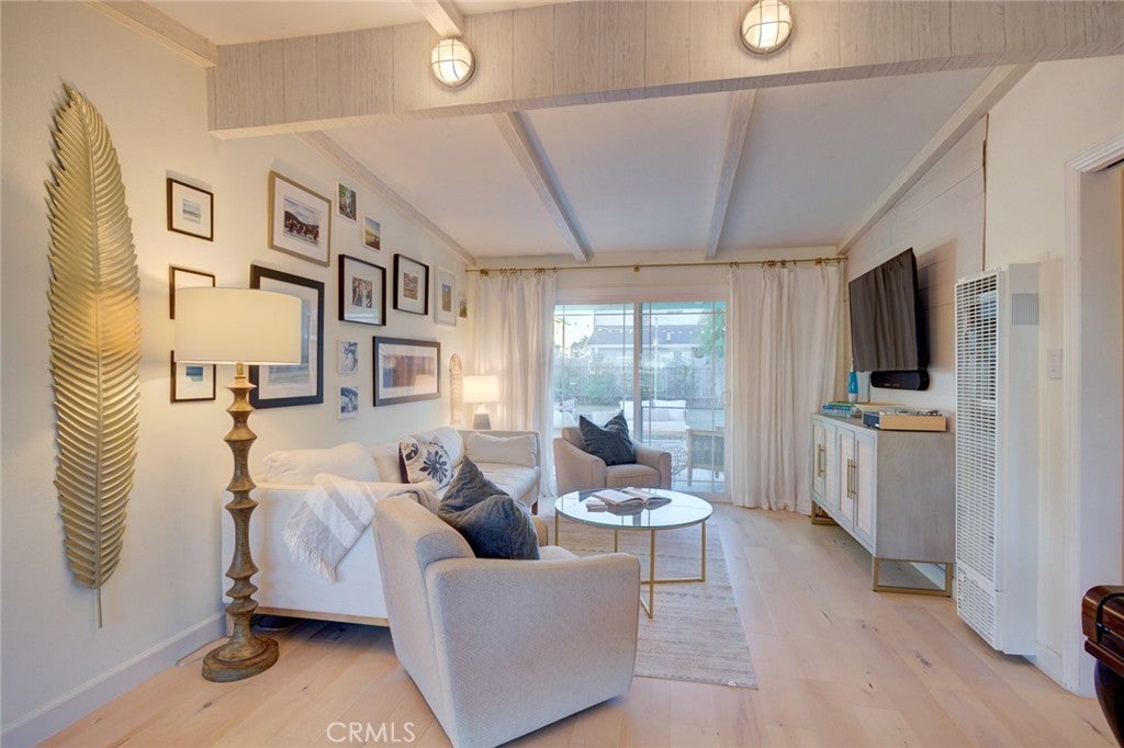 Welcome to 568 Seabright, a charming coastal retreat just blocks from the ocean. This beautifully updated 2-bedroom, 1-bath beach bungalow offers 924 square feet of light-filled living space, blending modern comfort with timeless coastal style. Inside, the inviting living room showcases vaulted beam ceilings and a large picture window that fills the home with natural light, while LVP and tile flooring flow seamlessly throughout. The modern kitchen features quartz countertops, white cabinetry, stainless steel appliances, and stylish new fixtures—creating a fresh, functional space perfect for everyday living or entertaining. The indoor laundry room adds convenience with a sink and matching front-load Samsung washer and dryer. A remodeled bathroom includes a sleek vanity, tile shower/tub combo, and built-in linen storage. Frosted glass closet doors, ceiling fans, and double-paned vinyl windows with custom coverings add thoughtful finishing touches throughout. Step outside to your private, fully fenced backyard oasis. A custom concrete patio is ideal for alfresco dining or cozy evenings by the fire, complemented by a pergola with a swinging bench, café lights, and raised garden beds surrounded by lush landscaping. An outdoor shower and storage shed provide plenty of room for surfboards and beach gear, while the gated entry enhances privacy and security. With its unbeatable location just blocks from the sand, 568 Seabright offers the perfect blend of coastal charm and modern convenience. Furnishings may be purchased separately - making it even easier to move right in and enjoy your new beach lifestyle.