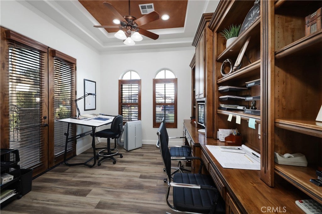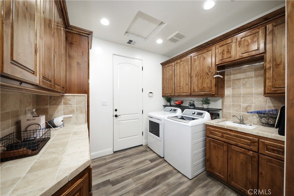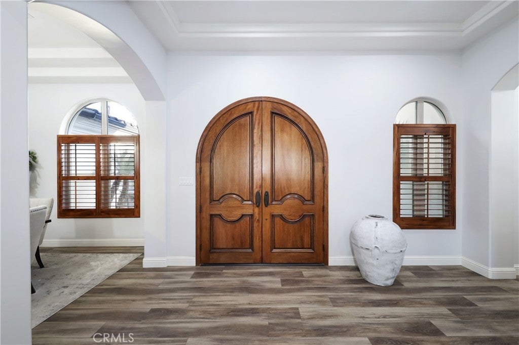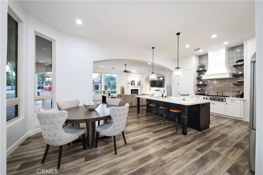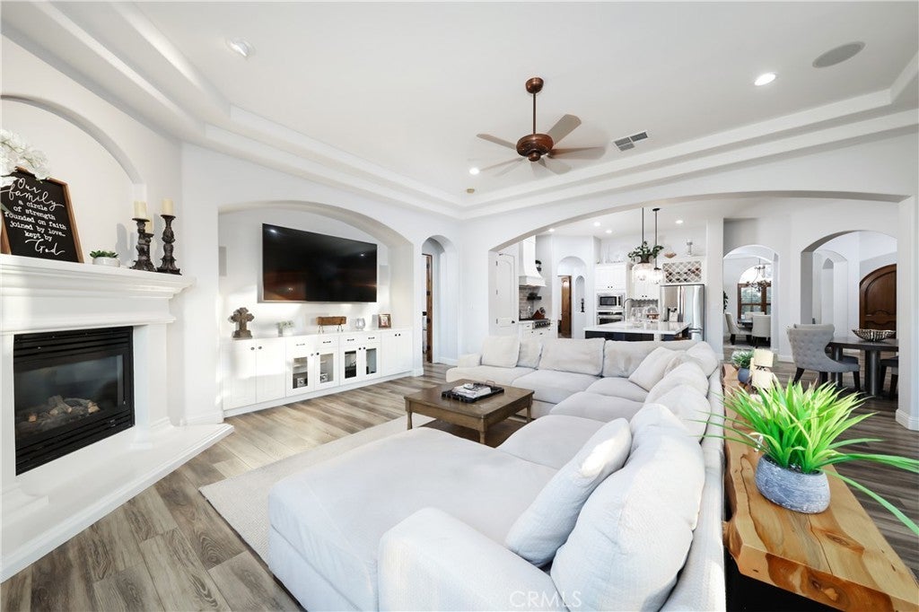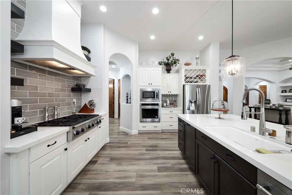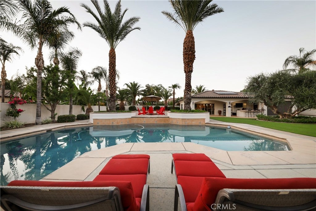 This stunning turnkey home in the highly desirable Talladega neighborhood offers over 4,200 sq. ft. with five bedrooms, four baths, (1 bd/1ba are in the guest house) and a split-wing wide open floorplan. A grand double-door entry opens to soaring tray ceilings and elegant living spaces. Highlights include paid solar, formal living and dining rooms, surround sound, wood blinds, central vac, 8-foot solid core doors, and rain gutters. The gourmet kitchen features quartz countertops and stainless steel appliances. The expansive master suite offers a walk-in closet and spa-like bath with Jacuzzi tub and large walk-in closet. .6 acres of outdoor living boasts a sparkling pool, built-in BBQ, and fire pit, with RV parking for convenience. A versatile guest/pool house perfect for extended family, hobbies, or car enthusiasts. Five garage spaces complete this one-of-a-kind residence designed for luxury, comfort, and entertaining.