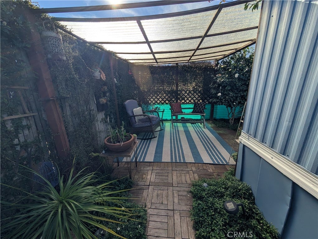This charming one bedroom one bath mobile home shows pride of ownership. Recently painted and updated including new windows and flooring. Custom decorative entry gate. This home is ideal for a plant lover or gardener. This home is surrounded by a thoughtfully created garden that is a truly unique botanical escape. It includes a curated collection of plants making it a tranquil sanctuary. The private backyard patio is perfect for entertaining or unwinding. Bird friendly retreat. Two storage sets in back provide extra storage space. Covered carport with room for two cars. Blocks to the beach and centrally located to shopping. Located at the back of the park. Fully fenced and pet friendly.