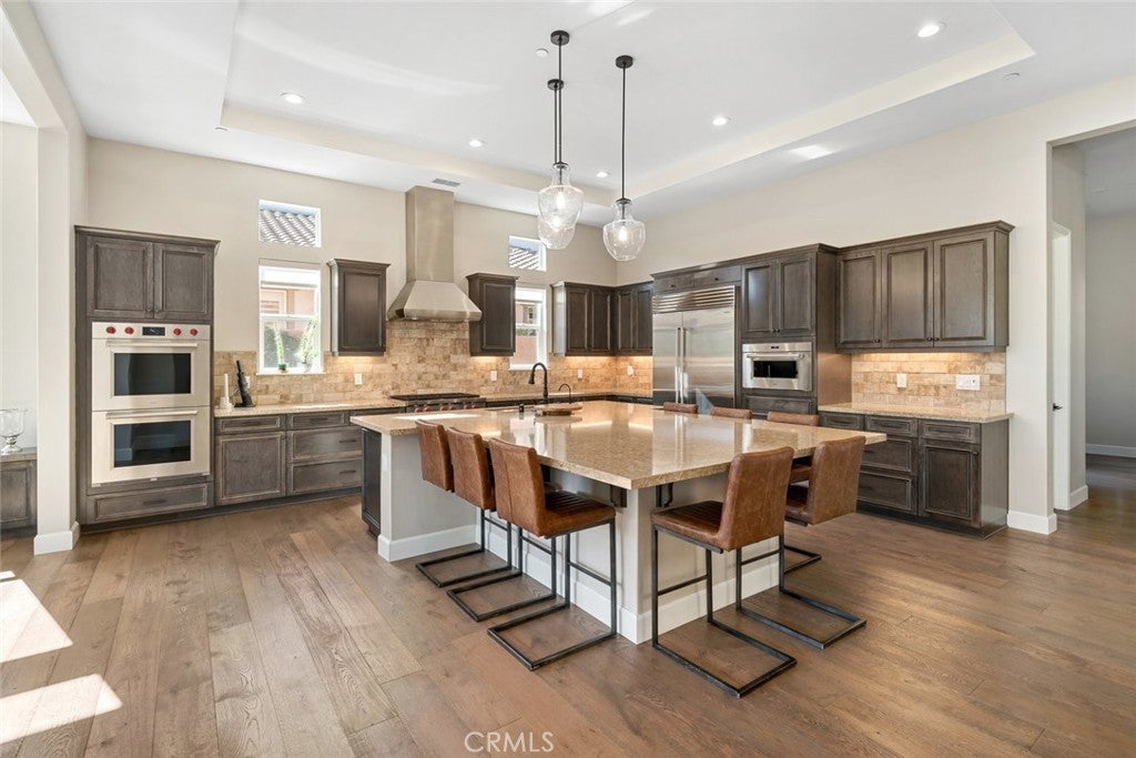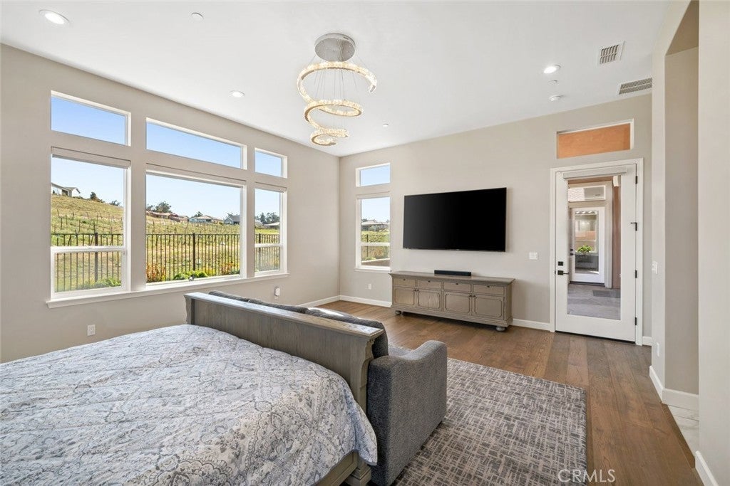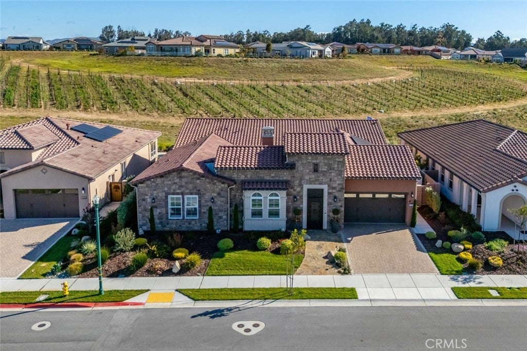 Welcome to this majestic, nearly new, Dolcetto Estate home with a spectacular 180-degree vineyard view, surrounded by stunning flagstone hardscape and lush landscaping. Built in 2022, this magnificent 3 bedroom + Den, 3.5 bath home offers 3,563 sq. ft. of impeccably designed living/entertaining space where no expense was spared. Enter through the enclosed courtyard with beautiful flagstone floors, a stone fireplace and French doors on three sides - it’s sure to be your private “go-to” place to relax. Inside, you’re met with sweeping views through the many windows/transom windows and the rolling wall of glass which unite the inside with the great outdoors - the backyard features a built-in fire pit, barbecue/kitchen and your own private putting green - this is Trilogy living at it’s best! And, that’s just the tip of the iceberg - starting with the impeccably designed culinary kitchen, you’ll love the rich raised-panel cabinetry with multiple pot drawers, top-of-line Wolf stainless steel appliances, including double wall ovens and a 6-burner gas cooktop with industrial stainless hood, Sub-Zero built-in refrigerator, gorgeous quartz countertops and large T-shaped island with modern pendant lighting and seating for 8, plus a walk-in pantry - it’s a chef’s dream! Surrounding the kitchen is a wraparound great room with stone fireplace, built-in lower cabinets and a spacious dining space with a striking custom chandelier - it’s bright, airy, and the views are outstanding. The private owner’s suite has a super spacious bedroom with custom chandelier, sleek power window shades, sitting area and direct patio access. The master bath is luxury personified - stunning tile shower with wraparound glass enclosure, Roman tub, separate dual sinks, vanity, linen storage, plus a massive, customized walk-in closet with convenient pass-thru to the laundry. Beyond are two guest bedrooms, both with walk-in closet and full en-suite bathroom with shower and exceptional finishes. Additionally, there’s an office, powder room, upgraded ceramic tile flooring, A/C, SOLAR, and a 3-car tandem garage with showroom epoxy floors, and upper storage rack. You may never want to leave this gorgeous home, but when you do you’ll have access to all the resort style amenities Trilogy has to offer.
