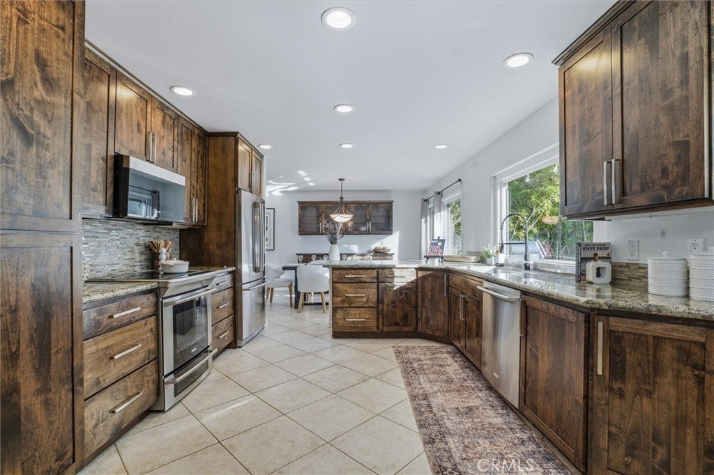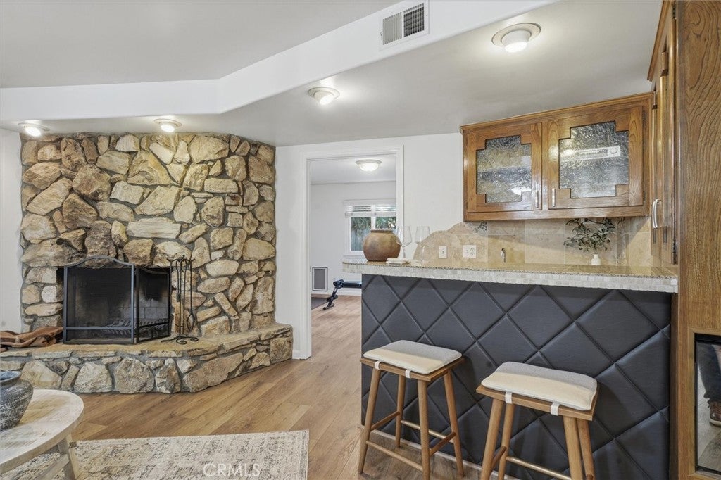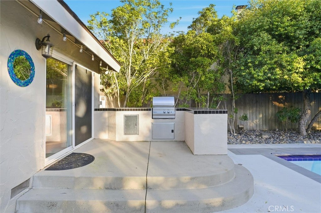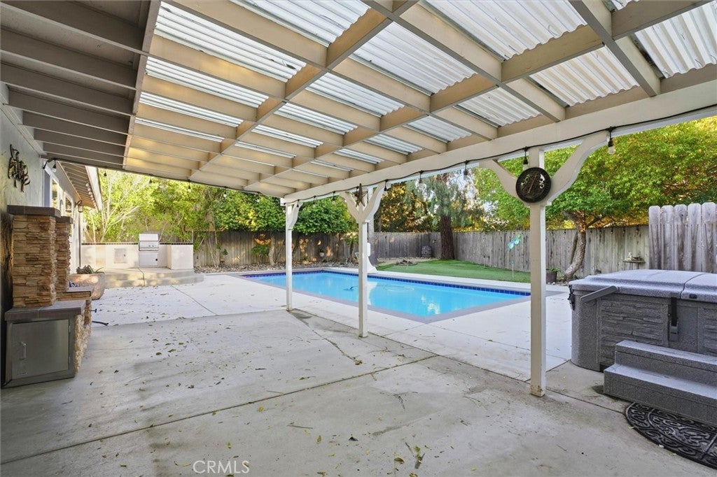 Spacious 4-bedroom, 3-bath home with an office AND flex room are a few of the highlights in this 2,713 sq ft home. Recently updated with brand-new luxury vinyl flooring and fresh interior paint throughout. Enjoy energy savings with paid-off solar. The remodeled, gourmet kitchen overlooks an entertainer's backyard featuring an inground pool, hot tub, outdoor kitchen, small putting green and beautiful fountain features. Cozy fireplaces highlight both the formal living room and den. Enjoy serving cocktails or coffee from the wet bar also. This home is complemented by a formal dining room off of the kitchen for gatherings. Gated RV storage provides added convenience and flexibility.