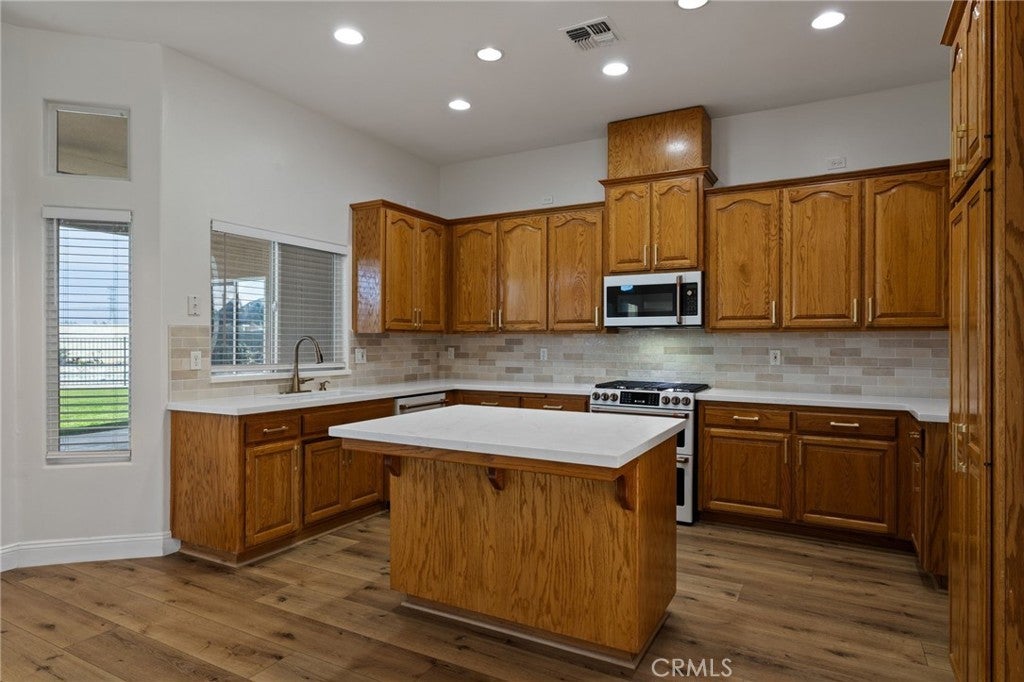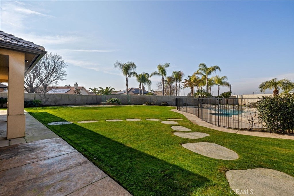 Welcome to this updated, custom-built home with back house located in the desirable Shilo Estates neighborhood of Northwest Bakersfield situated on an oversized cul-de-sac lot. The main residence, which has 3 bedrooms plus an office, has been recently refreshed with new luxury vinyl wood-look flooring, baseboards, carpet in the bedrooms, light fixtures, and complete interior pain. The updated kitchen features stunning quartz countertops and upgraded appliances, creating a bright and functional space perfect for everyday living and entertaining. Step outside to your private backyard retreat, complete with a fully fenced custom pool featuring cascading waterfalls, a large grassy area, designated gardening space, RV parking, and a full perimeter cylinder block wall for added privacy. The additional back unit adds flexibility and showcases wood-look flooring, fresh paint, new light fixtures, a kitchenette with bar counter, and an bath. This home is turn-key and ready for you to call home!
